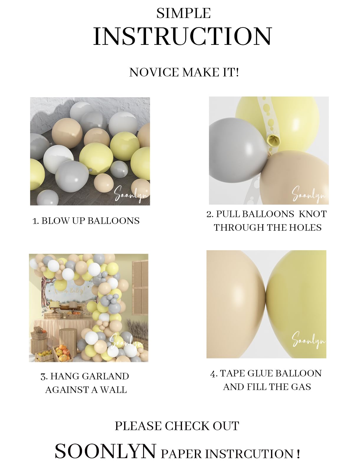 30% Thicken Balloons- 13Ft balloons, it comes with 12 inches 10 inches 5 inches, 4pcs balloon accessories. Yellow Balloons, nude balloons, gray balloons, white balloons