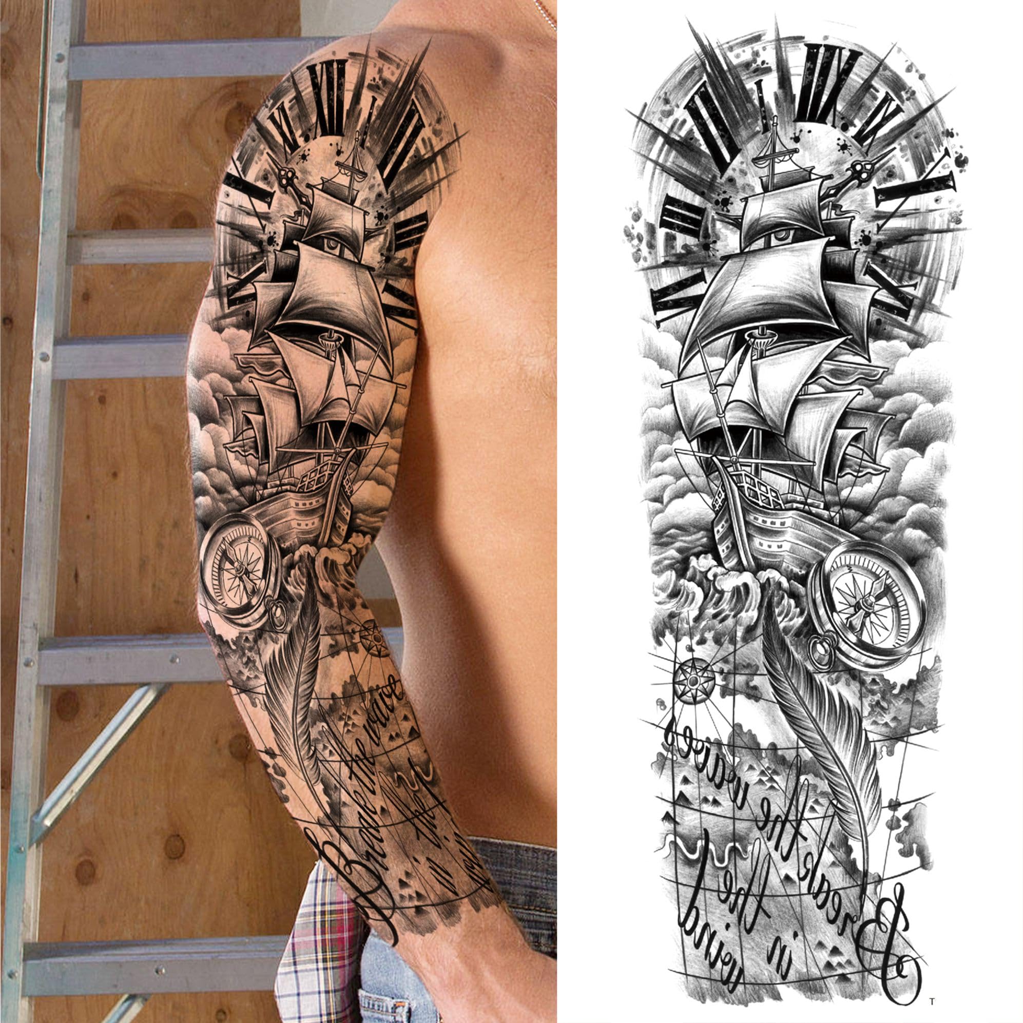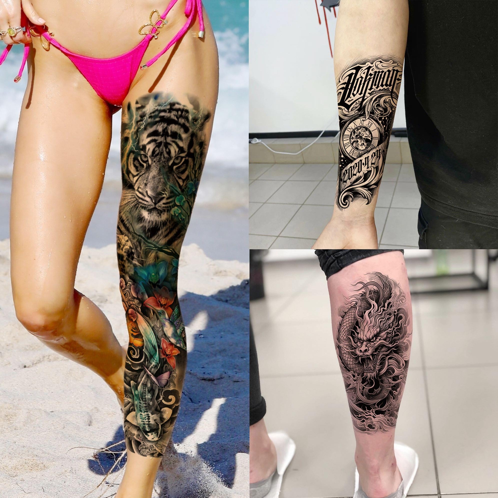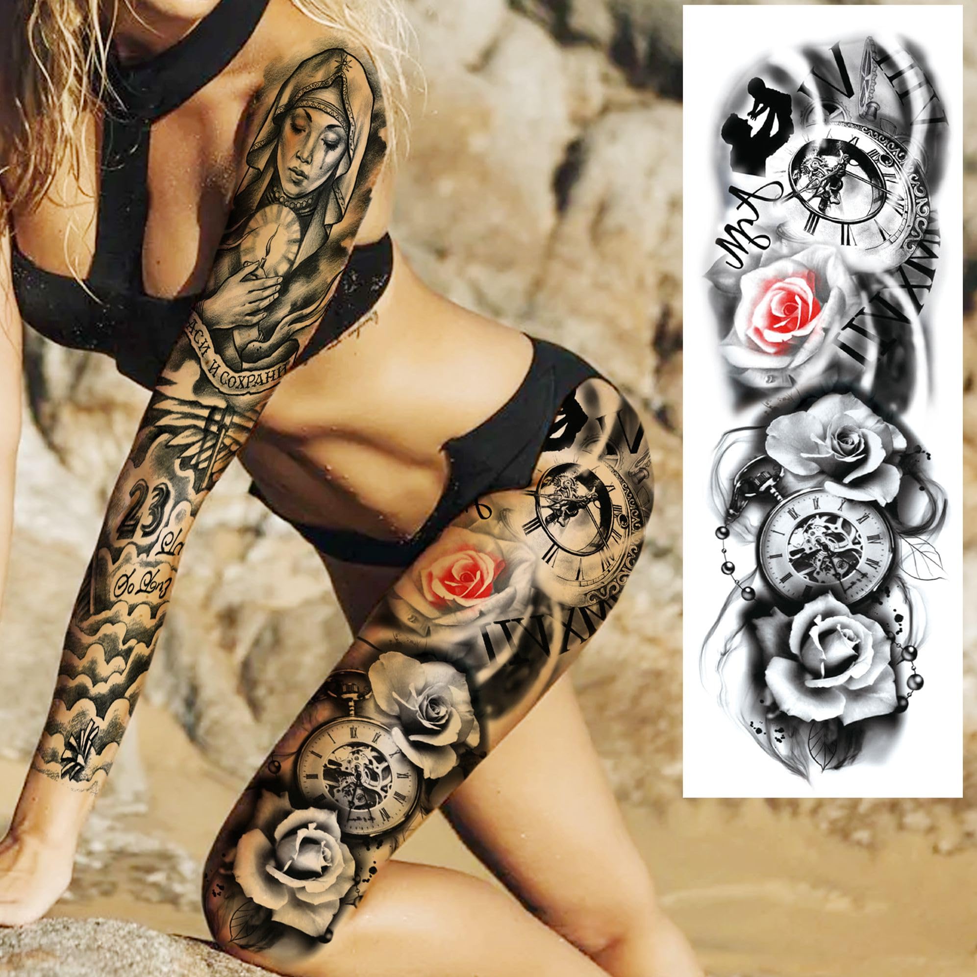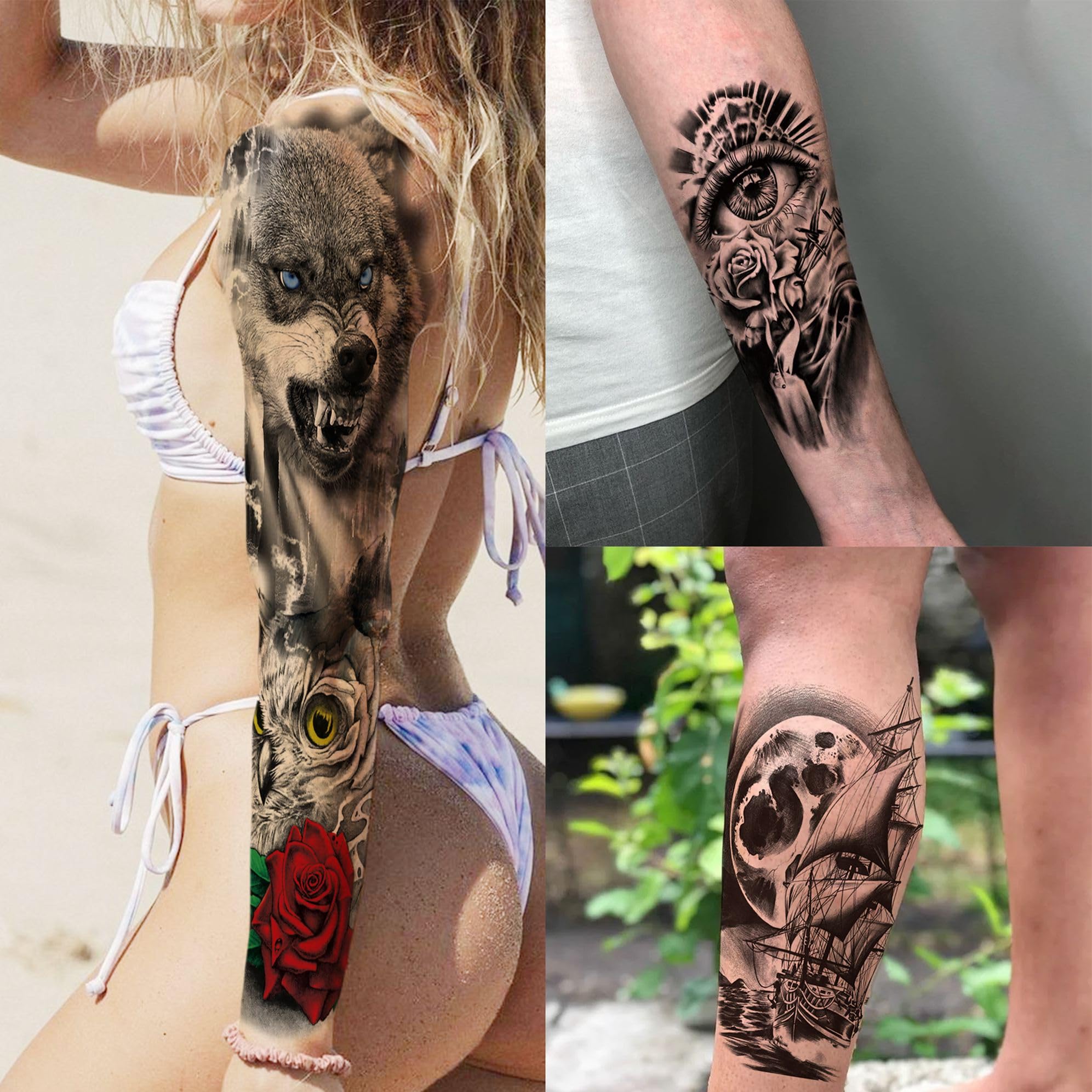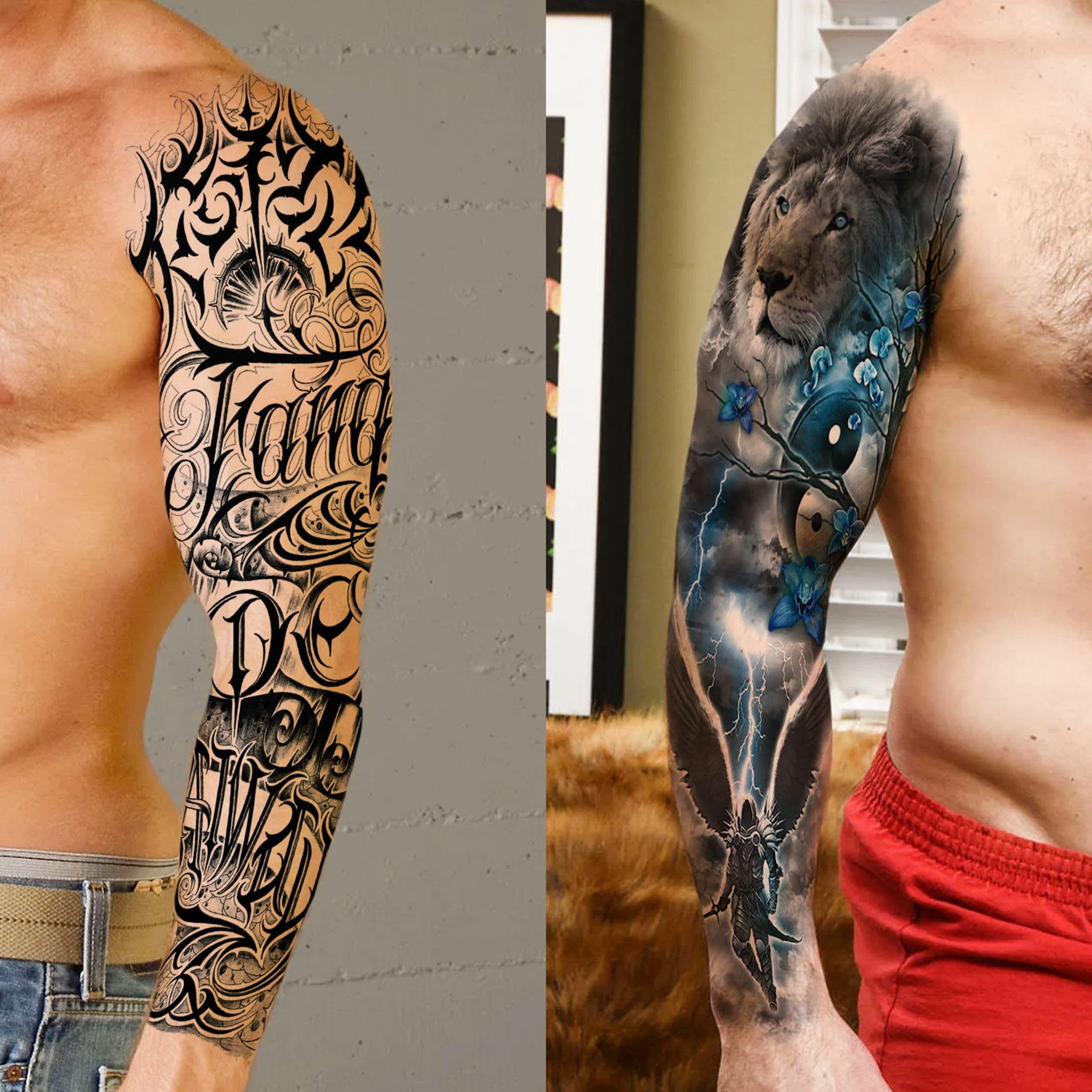 😈【20 Sheets Brand Realistic Lion Temporary Tattoos For Men Women Adults 】 Package Includes 8 Sheets Super Big Large Full Arm Sleeve Temporary Tattoos For Women and 12 Sheets Fake Tattoos For Adults, 3D Gothic Tatoos Nun Pray Skull Cross Barbed Wire Lion Warrior Wolf Tiger Flower Rose Sailing Ship Christian Maori Peace Loyalty Friend Faith Belief Family Love War Coyote Beast Animals.