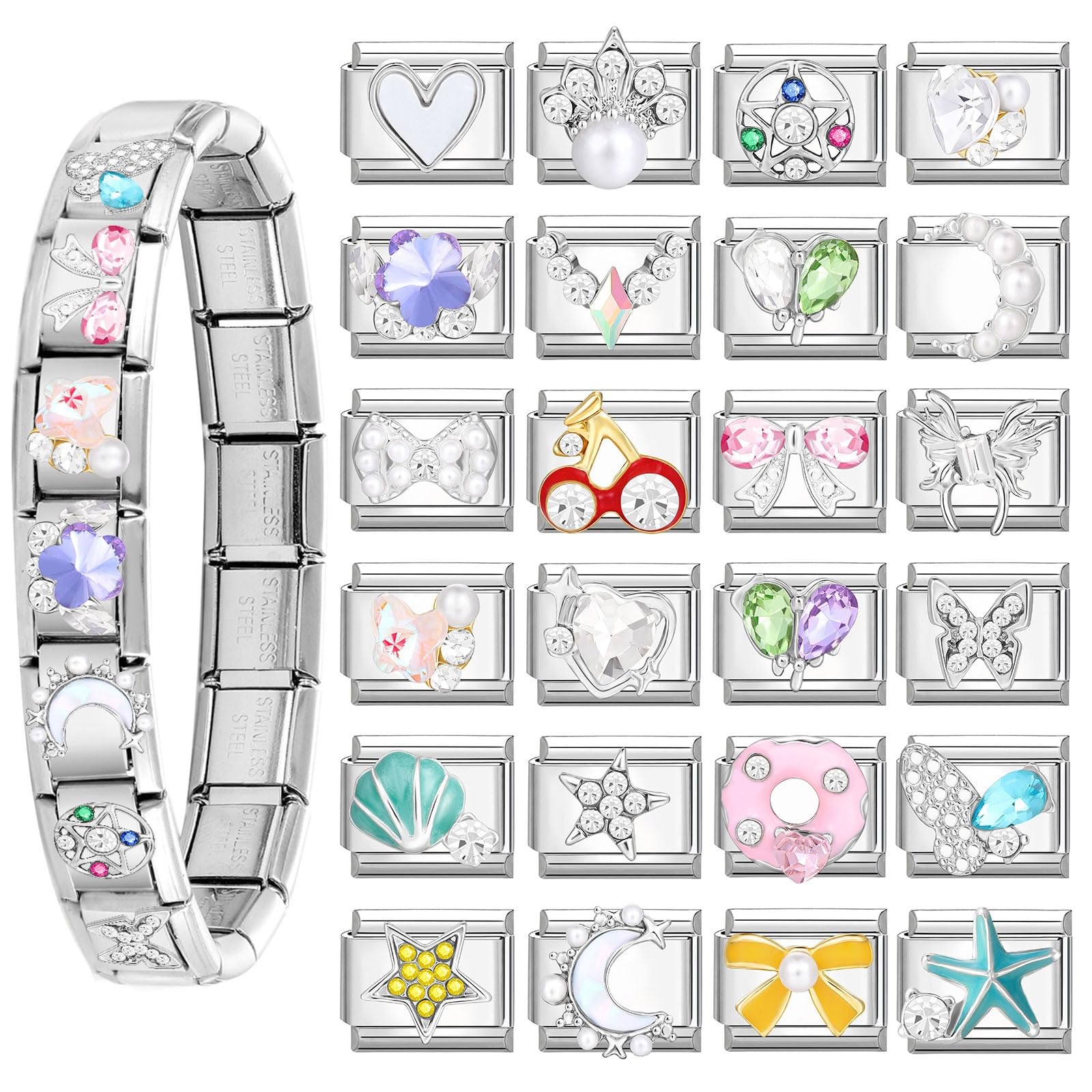HIGH QUALITY MATERIAL: The italian charms for bracelets are made of titanium steel material, which means high durability and elegant appearance, maintaining long-lasting lustre and texture.
