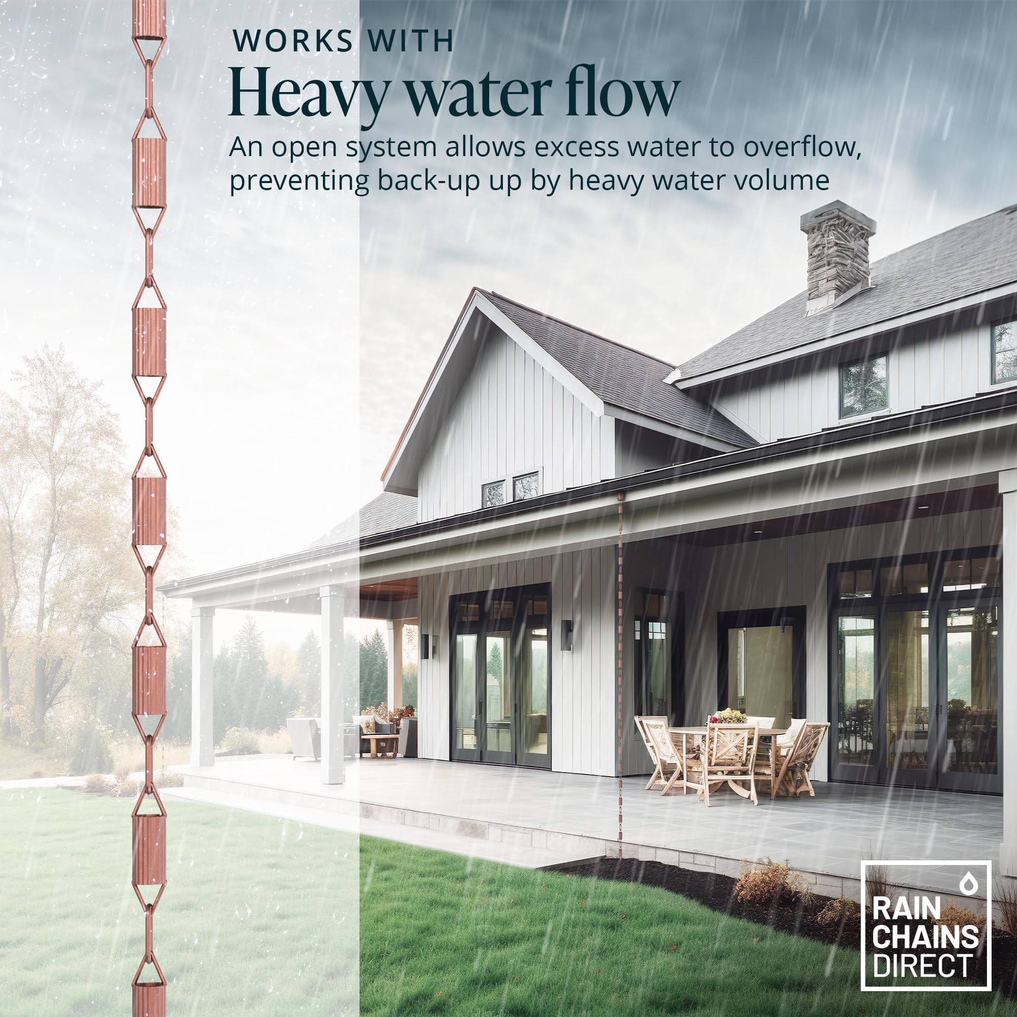 Unrestricted Water Flow - The open-flow design of the gutter chain downspout allows water to effortlessly cascade down the chain without fear of backing up, even in heavy rain.