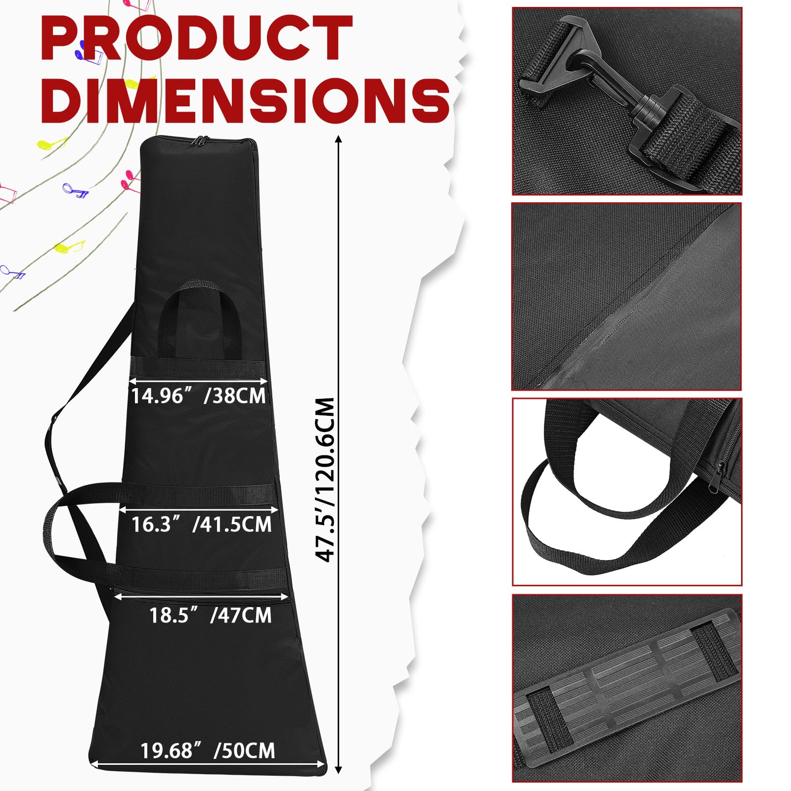 Reinforced Design: the total length of the guitar bag is 47.5 inches, which conforms to the curve of the guitar body; At the same time, a reinforced design is adopted to reinforce the interior of the spindle box and bridge, further protecting the guitar
