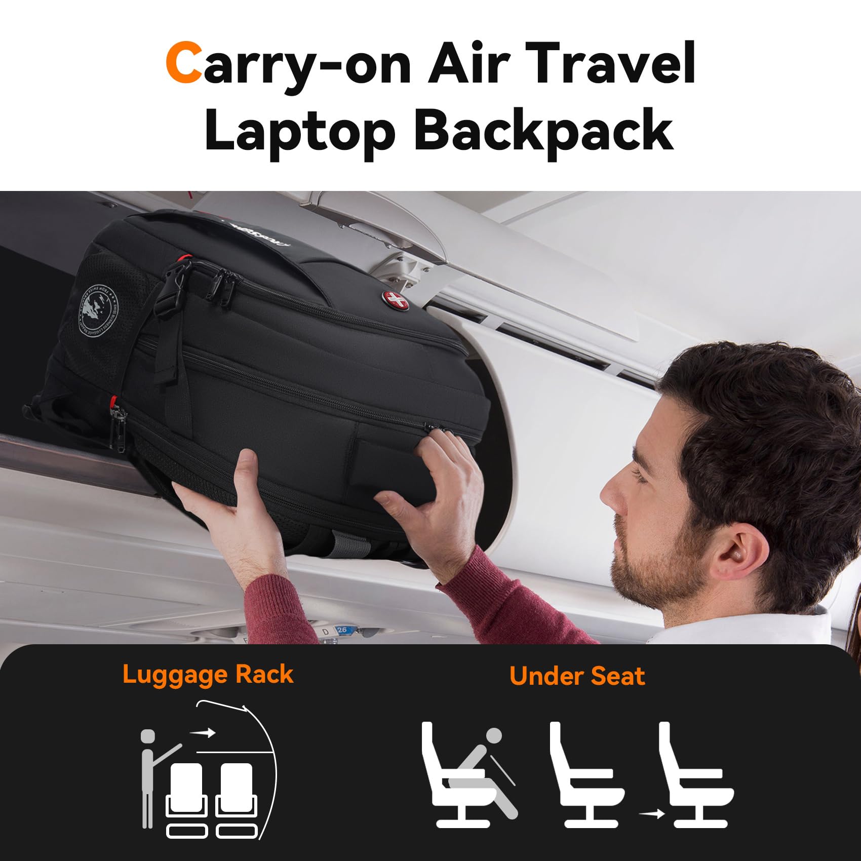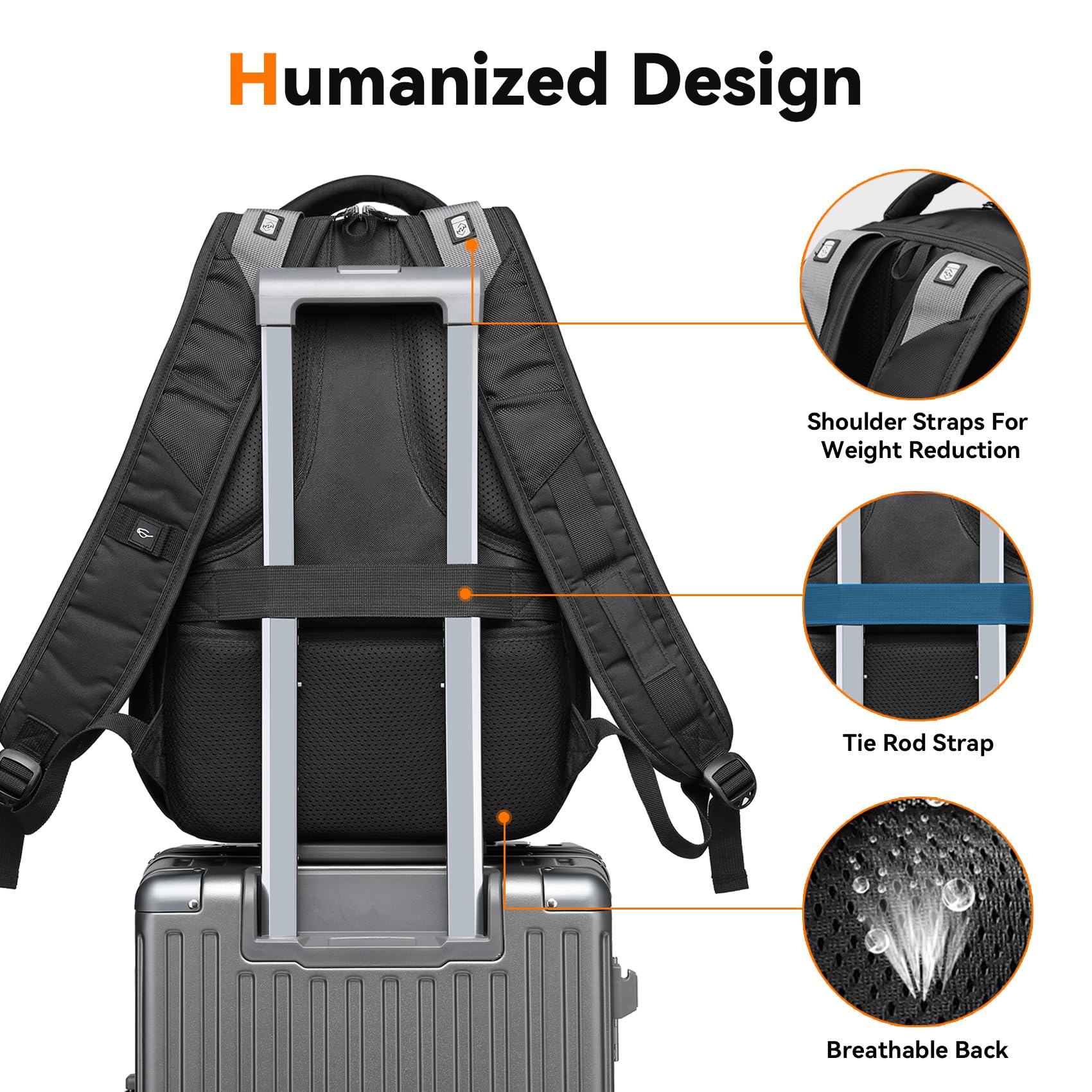 【Trolley Strap & Anti-theft Pocket】- This travel laptop backpacks featuring the luggage belt on the back, business traveller could fit carry on backpack right on the luggage suitcase for easier carrying which frees your hands. A hidden anti theft pocket on the back protect your wallet, passport and valuable items from thieves. This travel bag is a must-have for business traveling fit 3~5 days.It is also the best choice for gifts.
