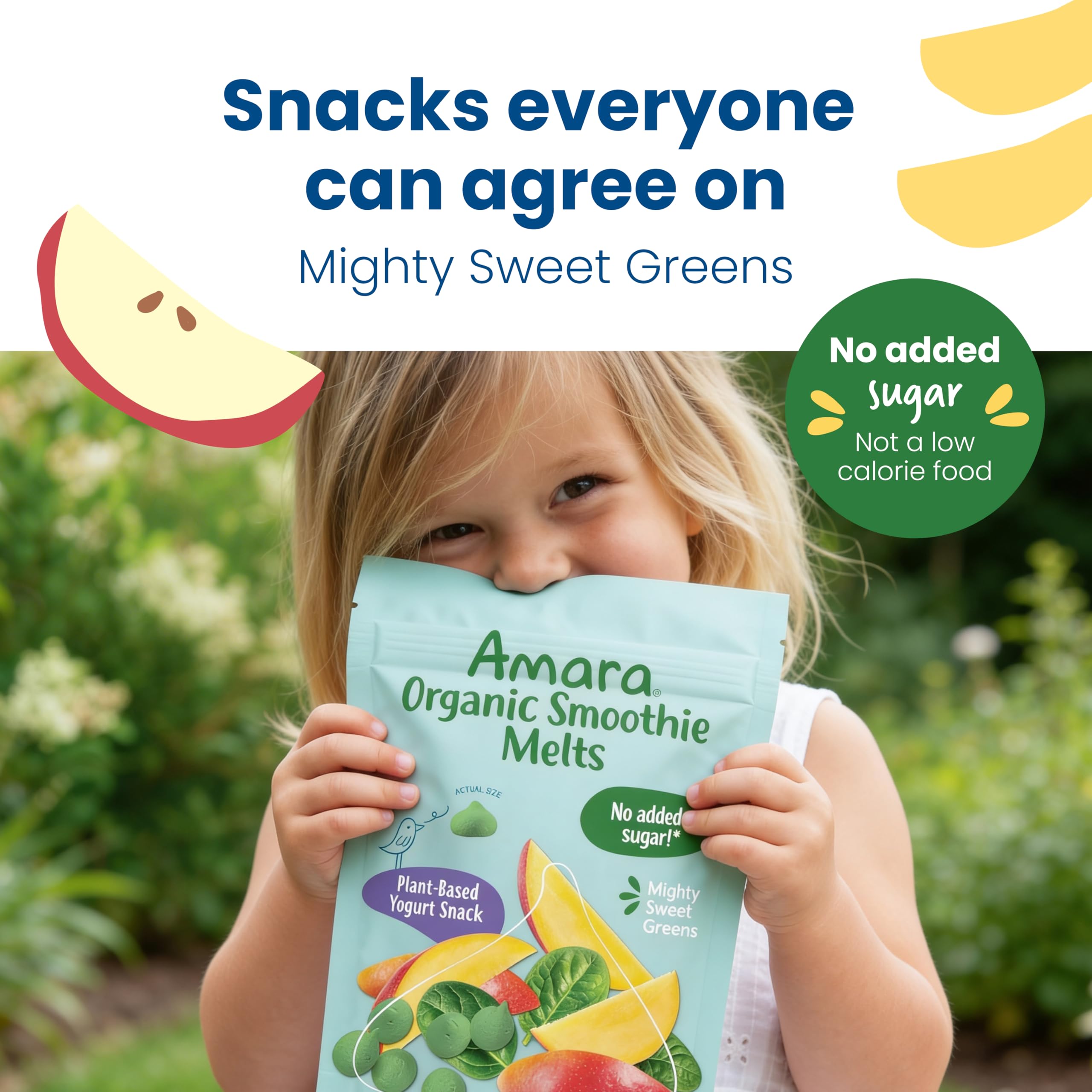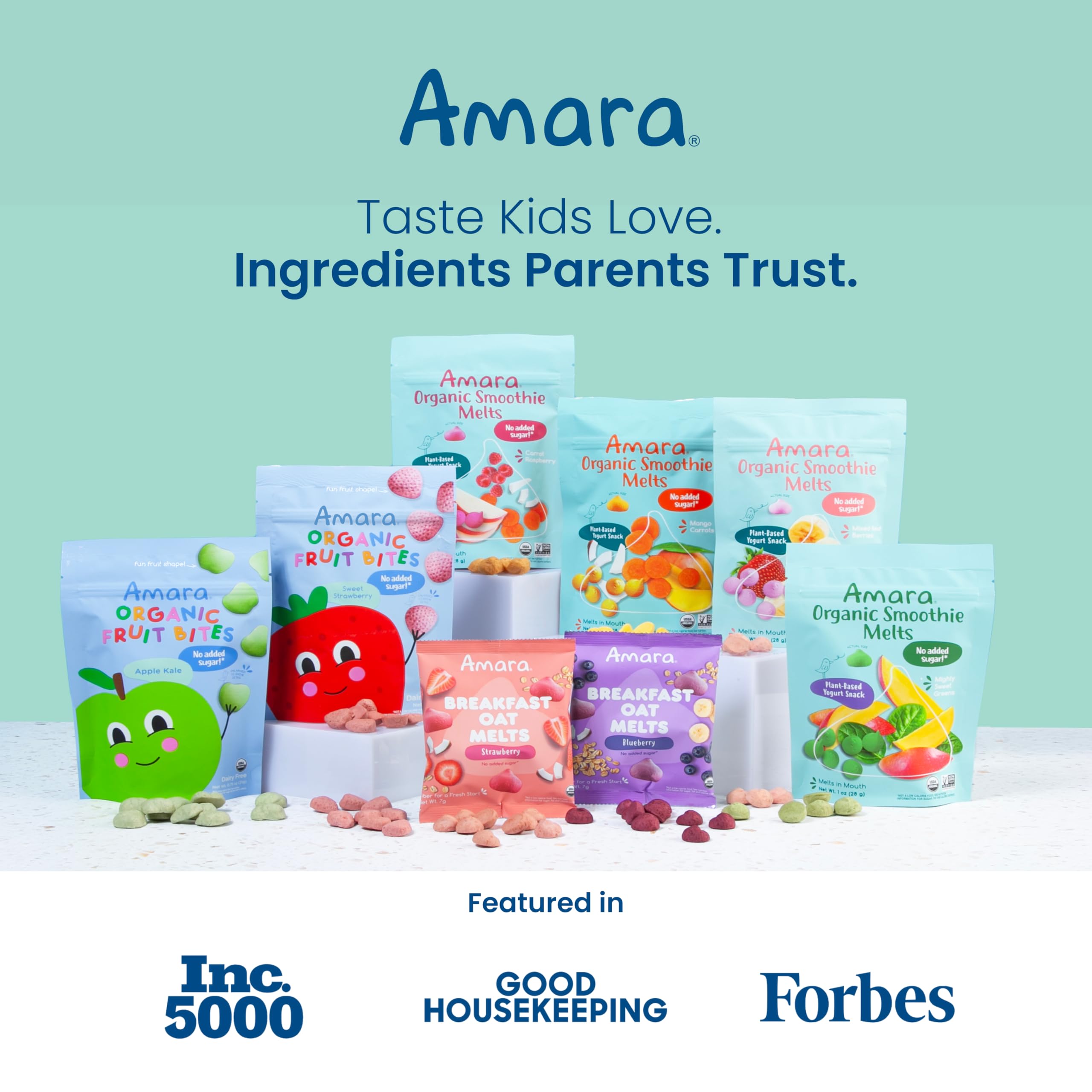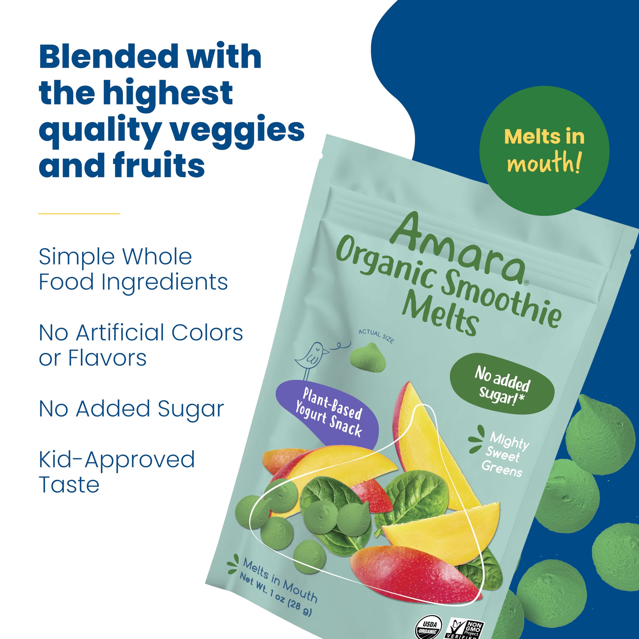 NO ADDED SUGAR: Amara delivers nutritious baby food and snacks that are 100% organic and non-GMO. The first melt-in-mouth snack without any added sugar or fillers, these melts keep little hands busy and tiny tummies full without the sugar crash.