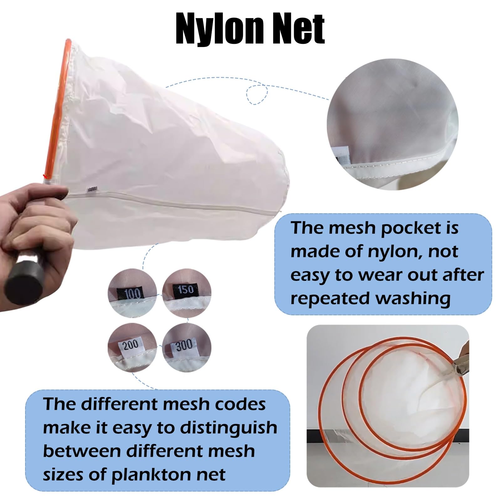 Experimental Grade Nylon: Our plankton collection net is made of experimental grade nylon mesh, it is strong and lightweight at the same time, and the finely woven nylon mesh will not harm plankton or fish, the smooth, polished edges protect your catch while resisting tangles