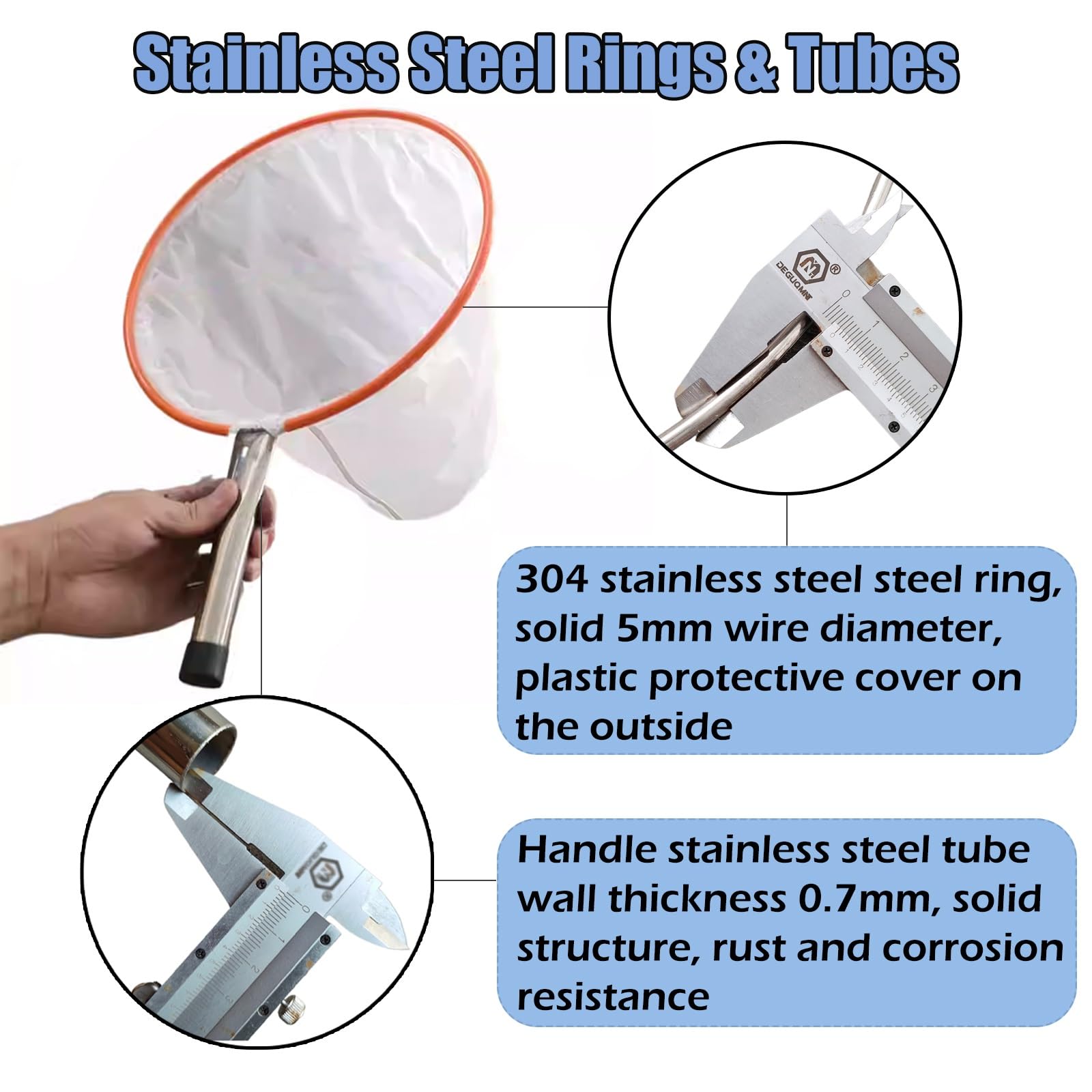 304 Stainless Steel Handle & Mesh Ring Our plankton filters are made of 304 stainless steel handles and mesh rings, which are strong and lightweight. The ultra-strong circular hoop maintains perfect shape for effortless scooping