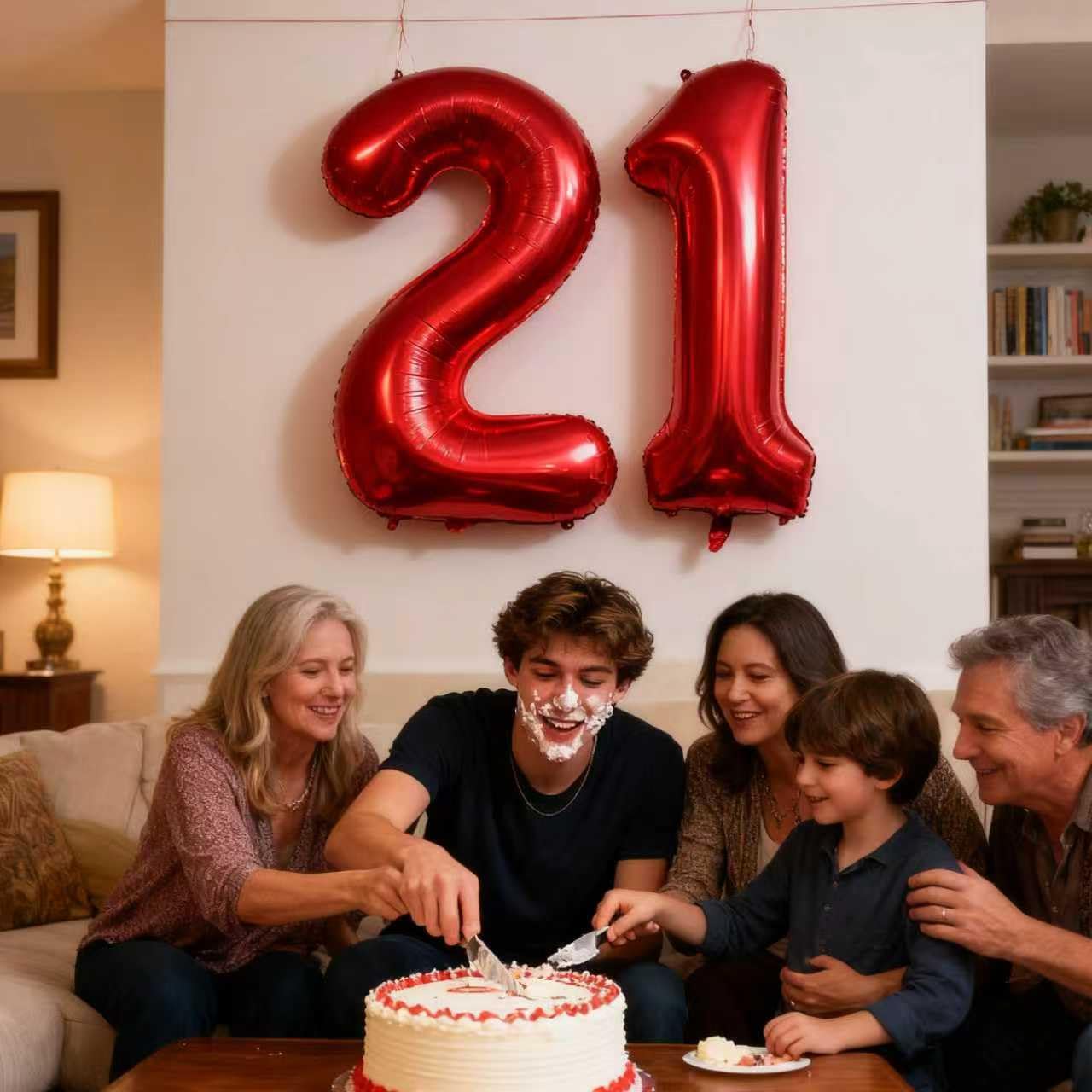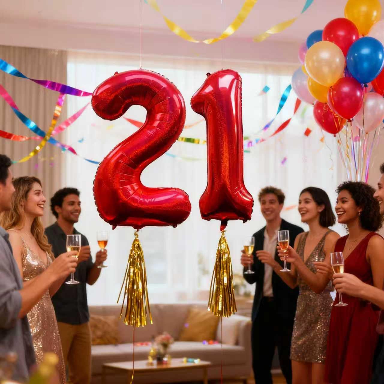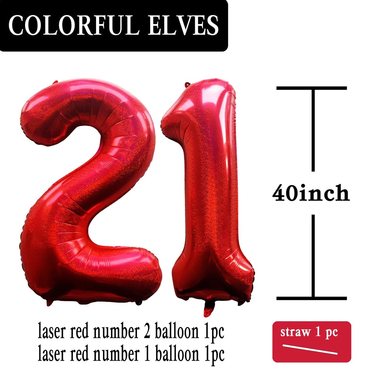 CHOOSE THEM: The Red number 21 balloons are made of aluminum foil, and the size of the balloons is 42 inches, which is 40 inches when filled with helium or air. Please use the straw in the balloon set to inflate it slowly.