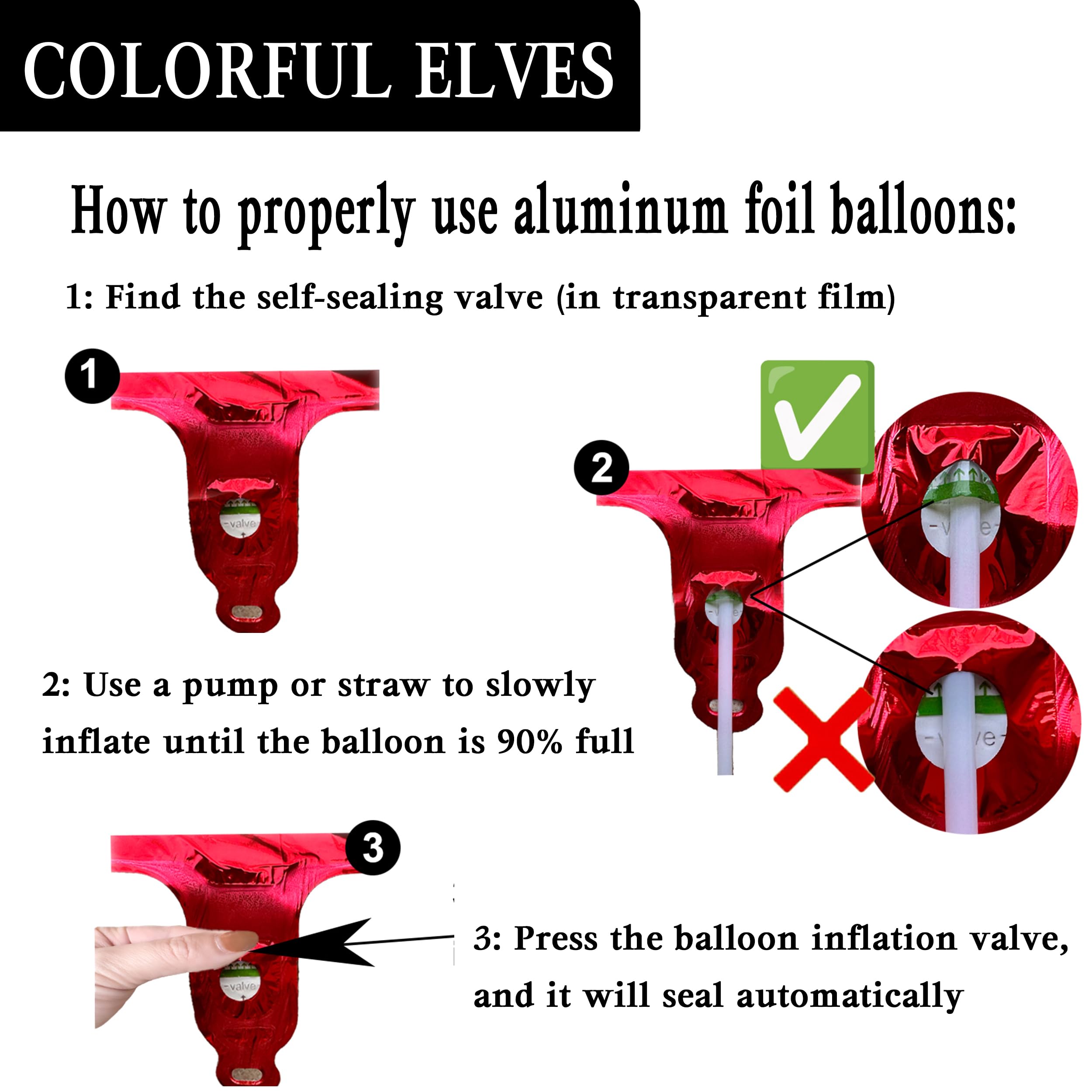 TIPS FOR NUMBER BALLOONS: Due to the thermal expansion and contraction characteristics of aluminum foil,please avoid filling more than 90% of air or helium.If it is over-inflated,it can easily cause the balloon to explode at high temperatures.Please avoid leaving the balloons in an outdoor high temperature environment for a long time.If the ambient temperature is too low,it will also cause the balloon to deflate.At this point,you can use the straw to inflate again.