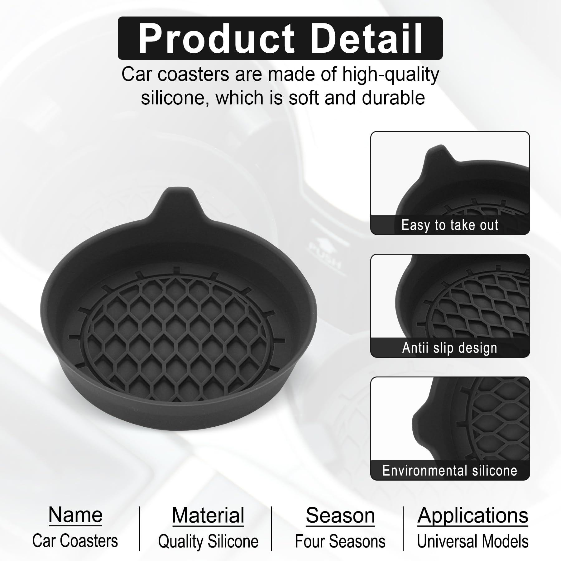 High Quality Material: The coaster is made of environmentally friendly silicone, safe, non-toxic and odorless. Soft with toughness, easily embedded in the cup holder. Very durable, wear-resistant, long service life. High temperature resistance, can withstand 100 ℃ high temperature water cups.