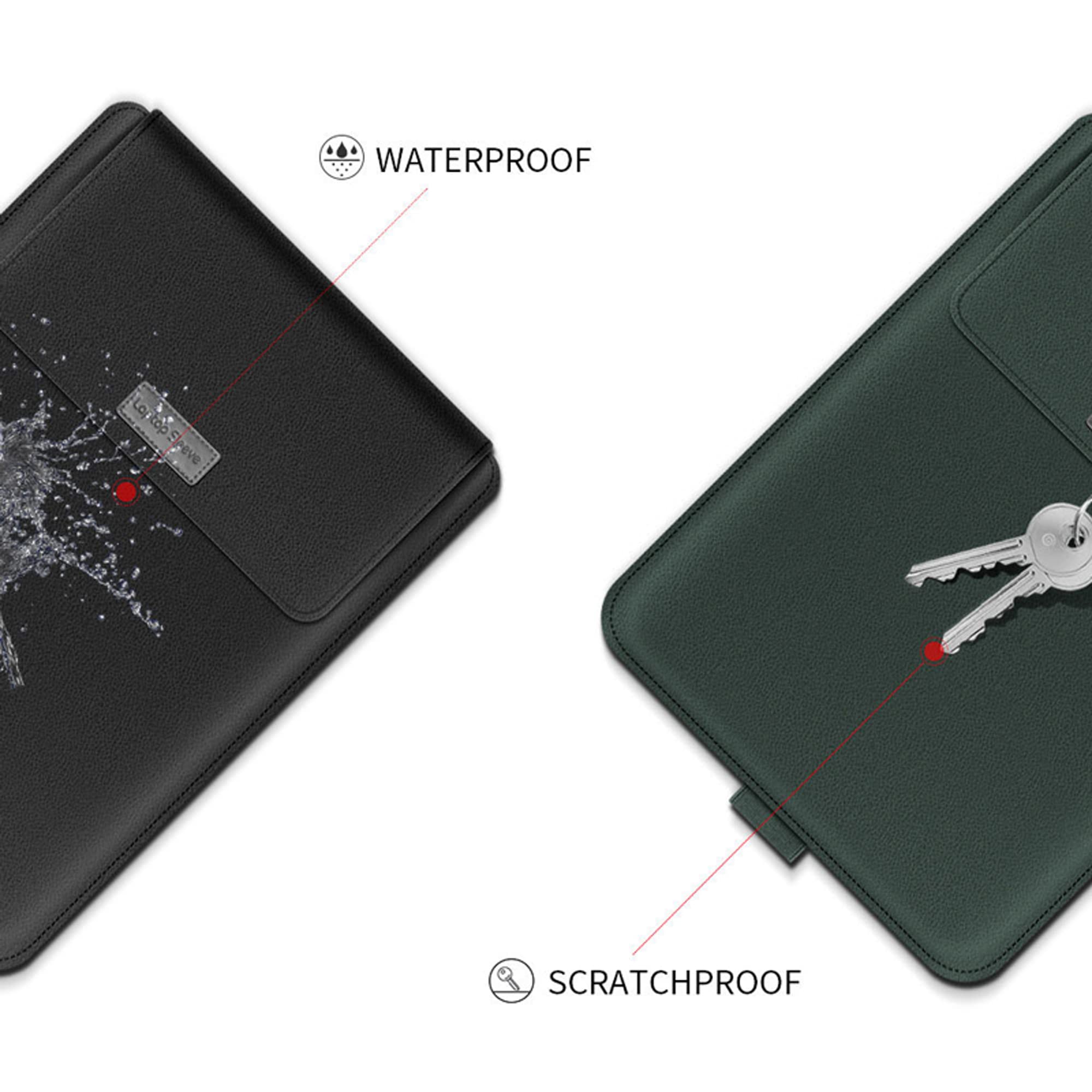 Made of water-resistant synthetic leather and soft lining, this sleeve case will effectively protect your laptop from unwanted scratches, water, coffee and dust, which may result in damage to your device.