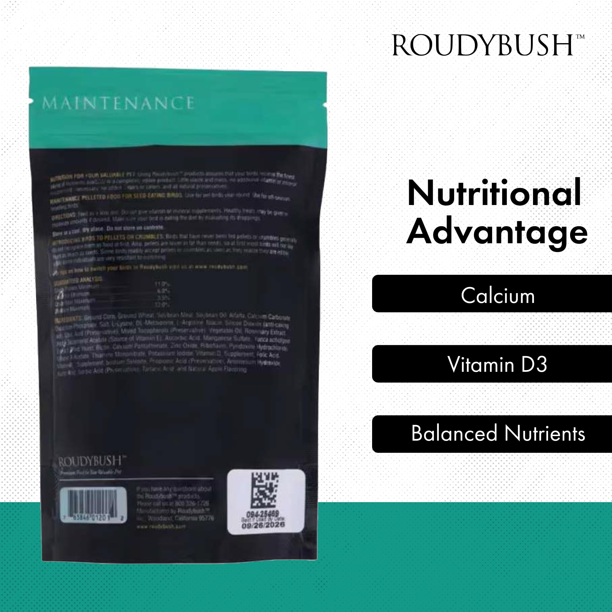 TRANSITION WITH CONFIDENCE: These bird pellets are perfect as a transition food when switching your bird from the old bird food to Roudybush. There is no need for additional vitamin or mineral supplements.