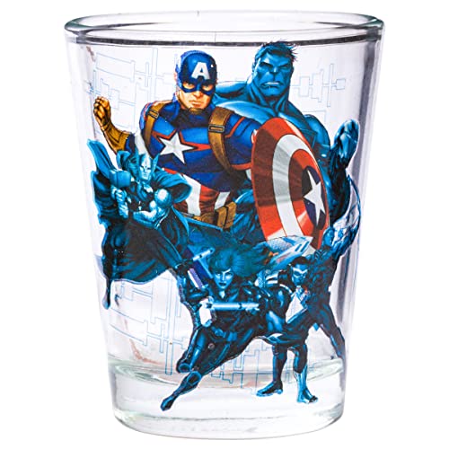 MINI-GLASS SET: This 4-pack of mini-glasses holds 1.5 oz of each of your favorite drinks. Make your party awesome with this cool Avengers 4pc. Mini Glass set of your favorite iconic Avenger characters