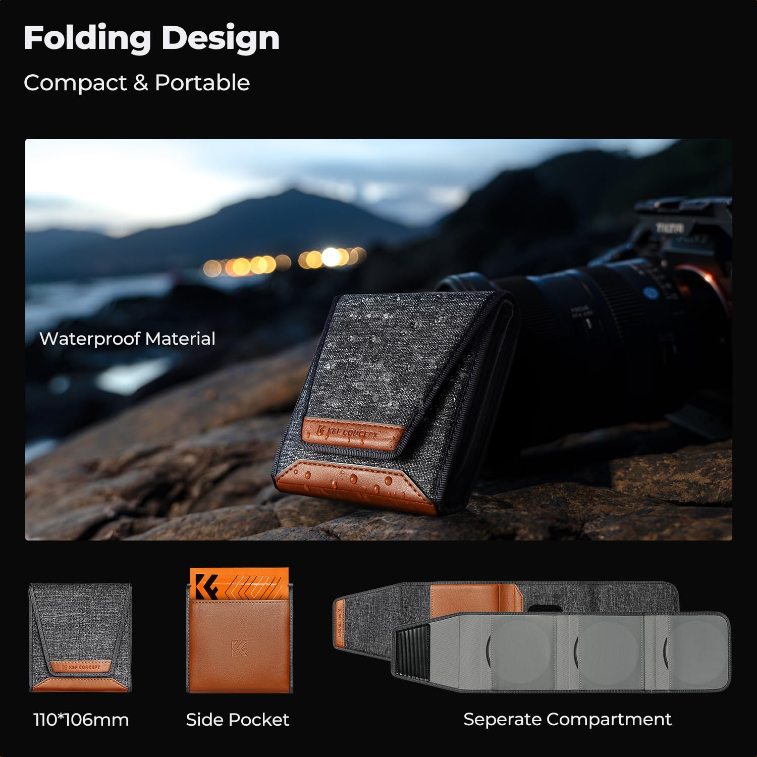 Spotless Lens, Effortless Carrying: The included microfiber cleaning cloth is engineered to be static-free, making it exceptionally effective at banishing dust and smudges from your precious lenses and cameras. The custom filter pouch accommodates up to three filters, simplifying transport and organization.