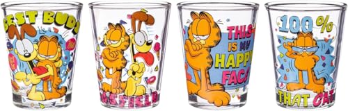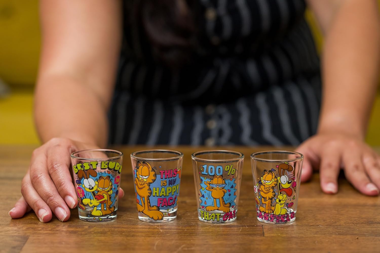 4-PIECE SET: Retro mini glass set comes with 4 glasses, 1.5 ounces each. Great to enjoy drinks with friends, or as a Garfield collector item.