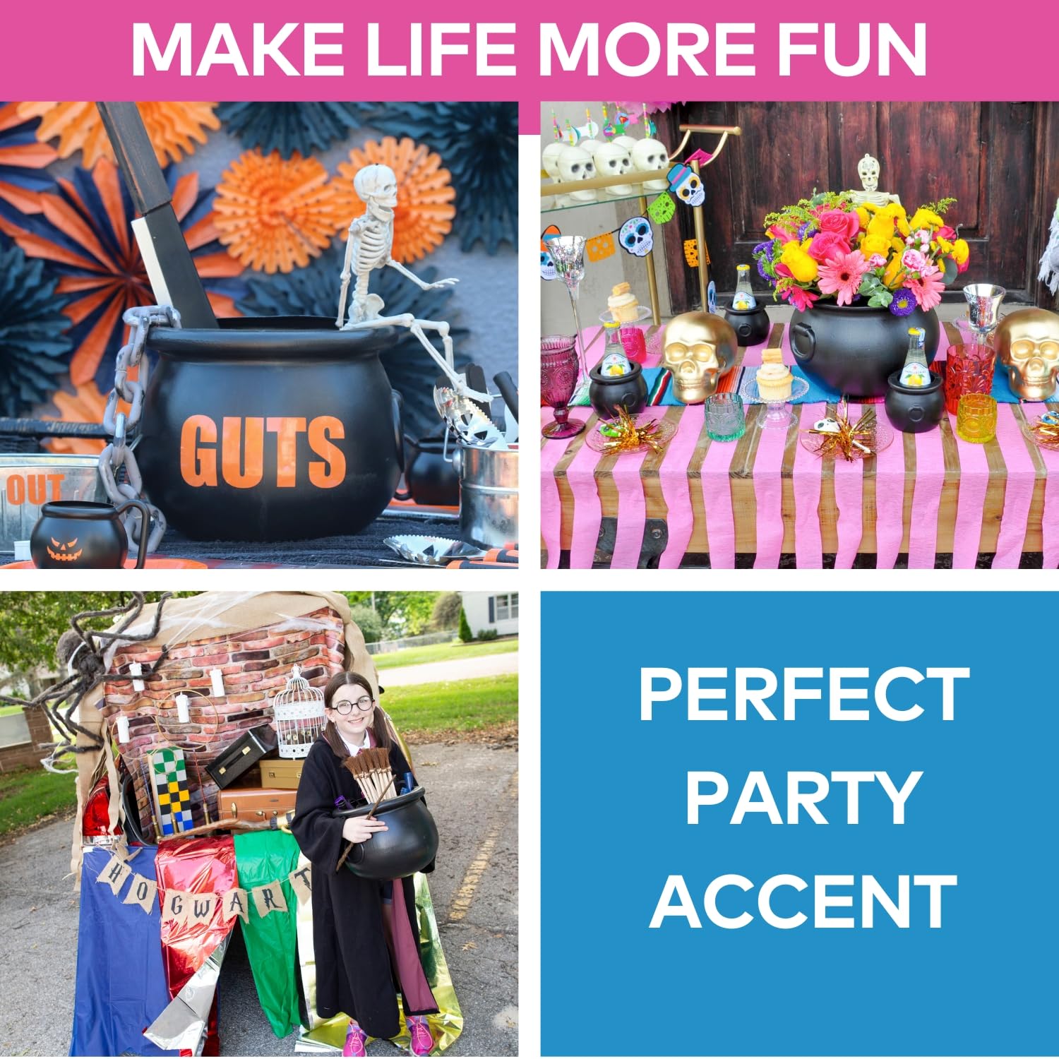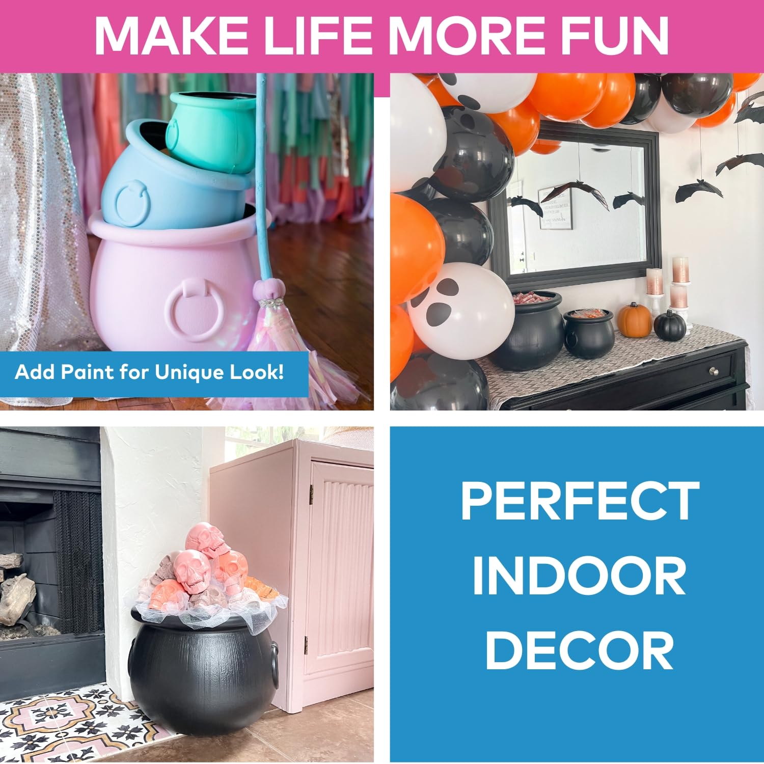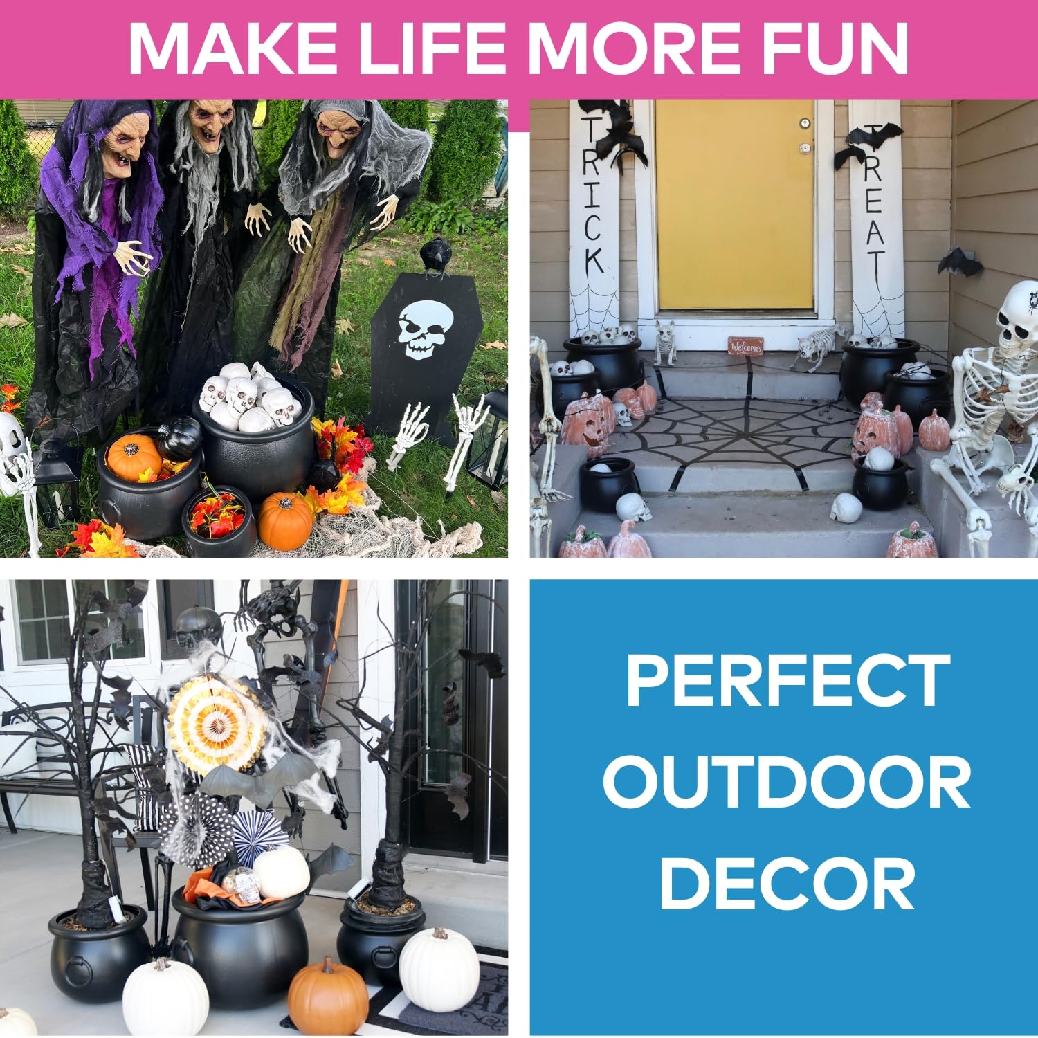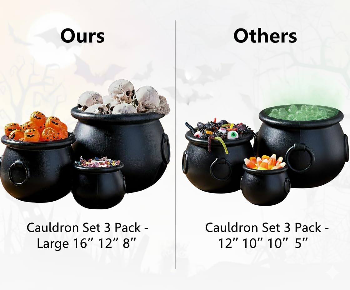 Complete 3-piece cauldron set: Get three versatile sizes (16", 12", and 8") perfect for creating layered halloween party decorations, serving as halloween candy bowls, or displaying witch halloween decor throughout your home for maximum festive impact