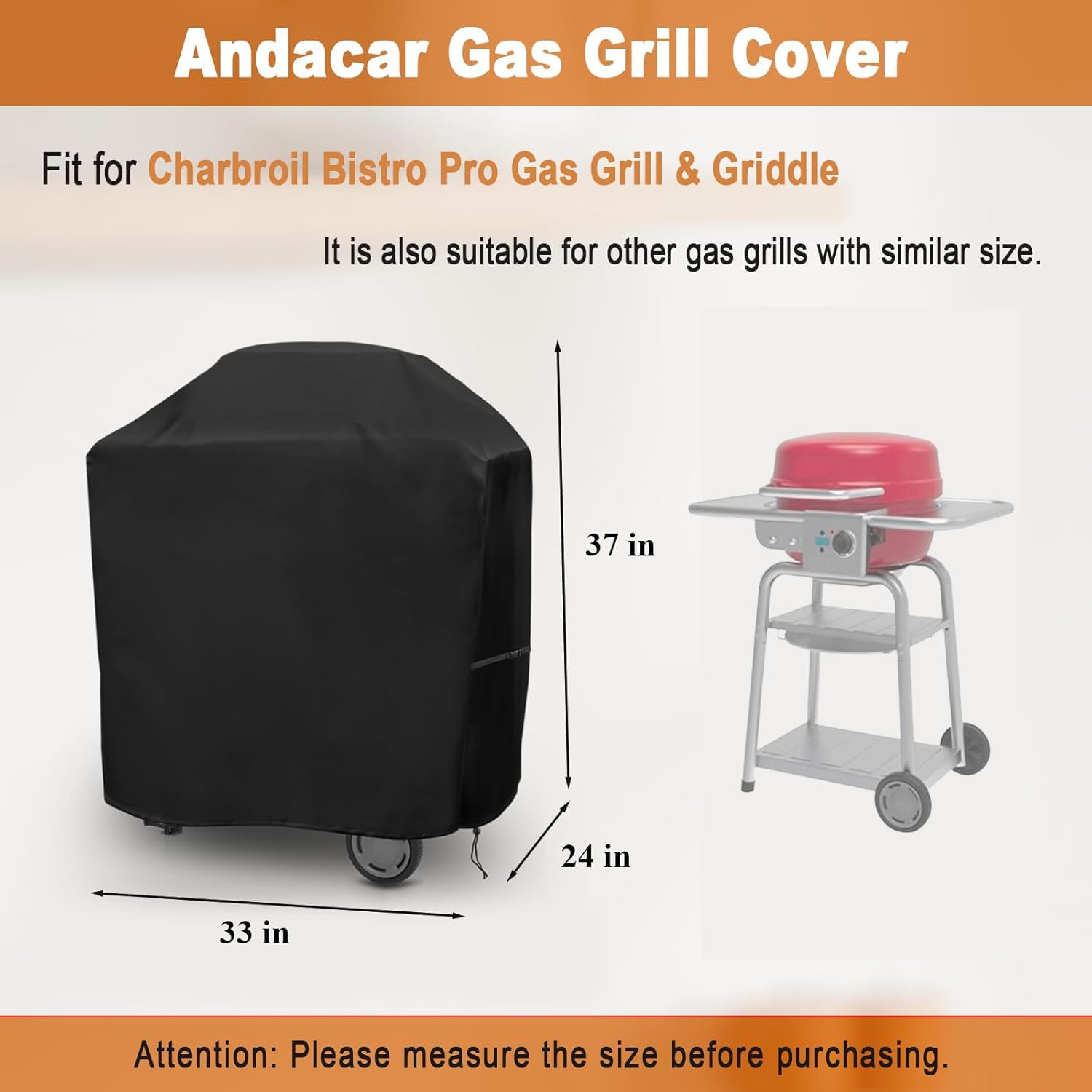 Outdoor Grill Cover Size: 33" x 24" x 37", The gas grill cover fit for Charbroil Bistro Pro electric grill & griddle or gas grill for 25302145 25302146 25302148 25302161; Also fits for other griddle grills with similar size