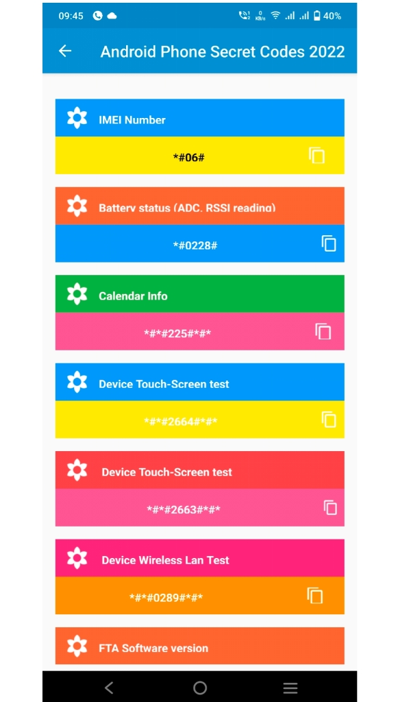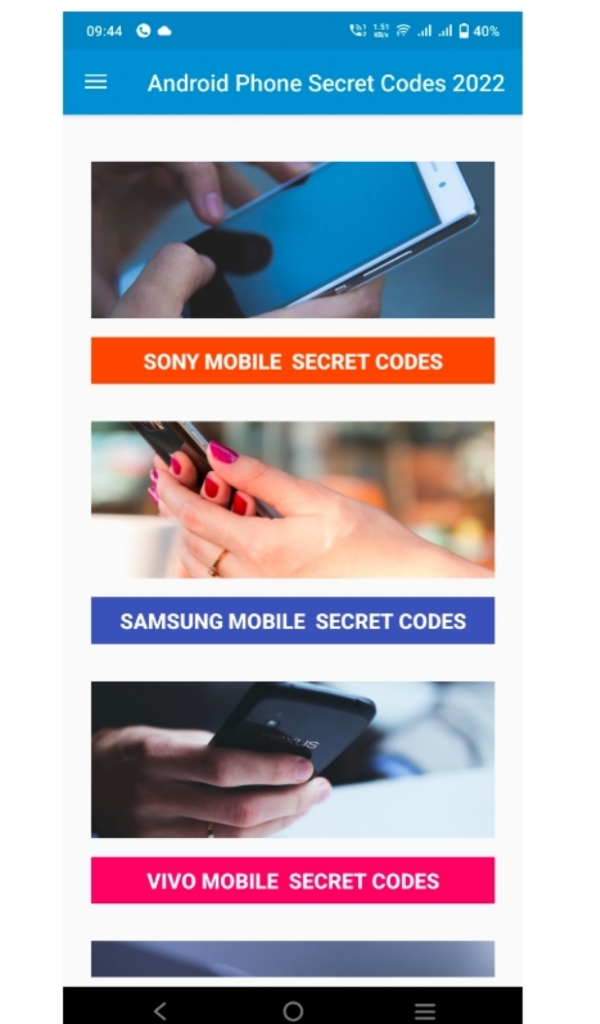 Android Phone Secret Codes 2022 App include the mobile secret code of all mobile device like Samsung, Sony, Lenovo, MI, Motorola, BlackBerry, China, HTC, LG, MicroSoft/Windows, OPPO and Huawei. In this app, there are various hidden codes given which can be employed on the mobile devices.