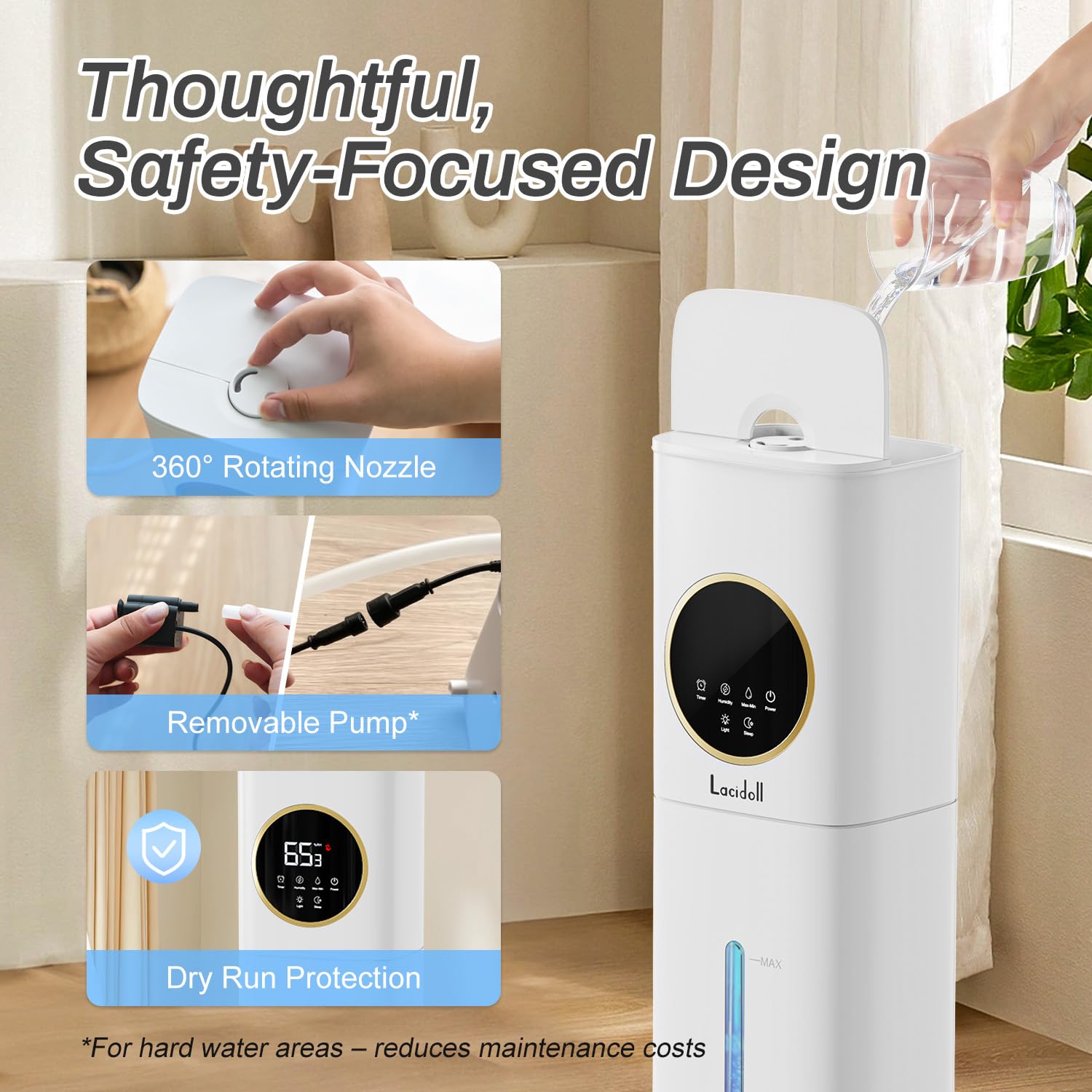 [Designed to make your life easier] You can fill the large water tank directly from the top without disassembly. Set the running period with the 1-12 hour timer and easily control your humidifier with the LED control panel. The wide detachable water tank makes daily cleaning a breeze. And with the remote control, you can control the device from across the room whenever you need.