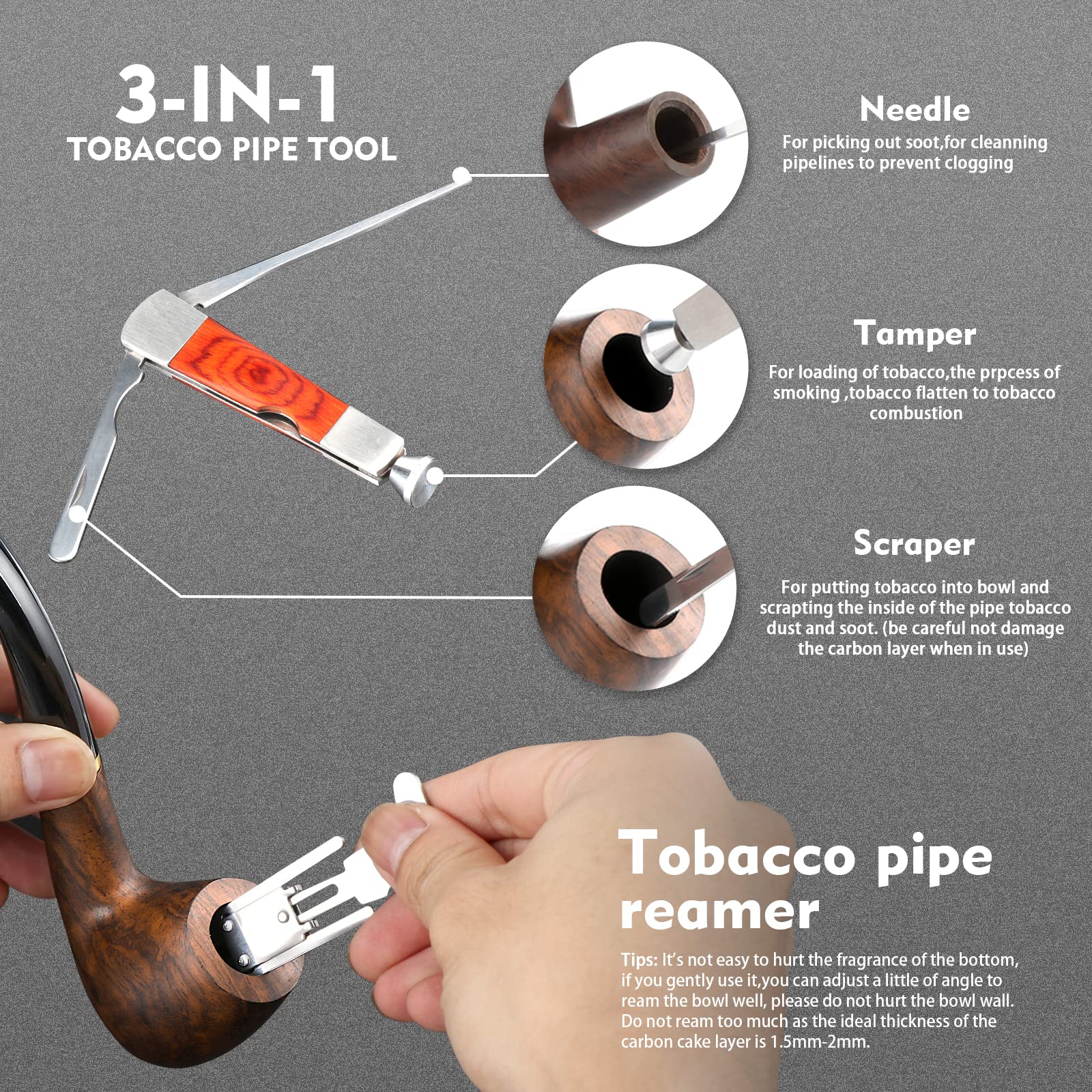 CONVENIENT for CLEANING: Detachable pipe is equipped with pipe cleaners, 3-in-1 pipe scraper, cleaning will be easier.
