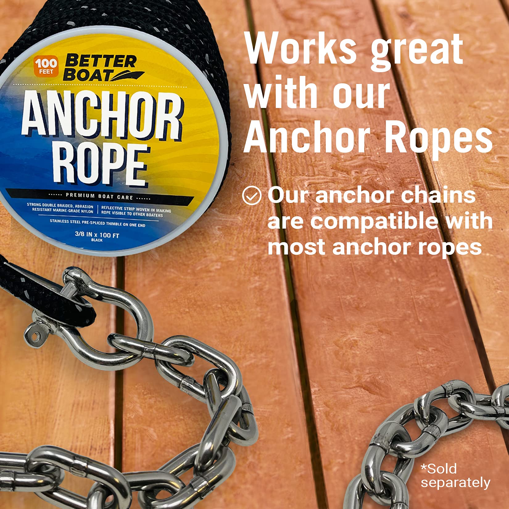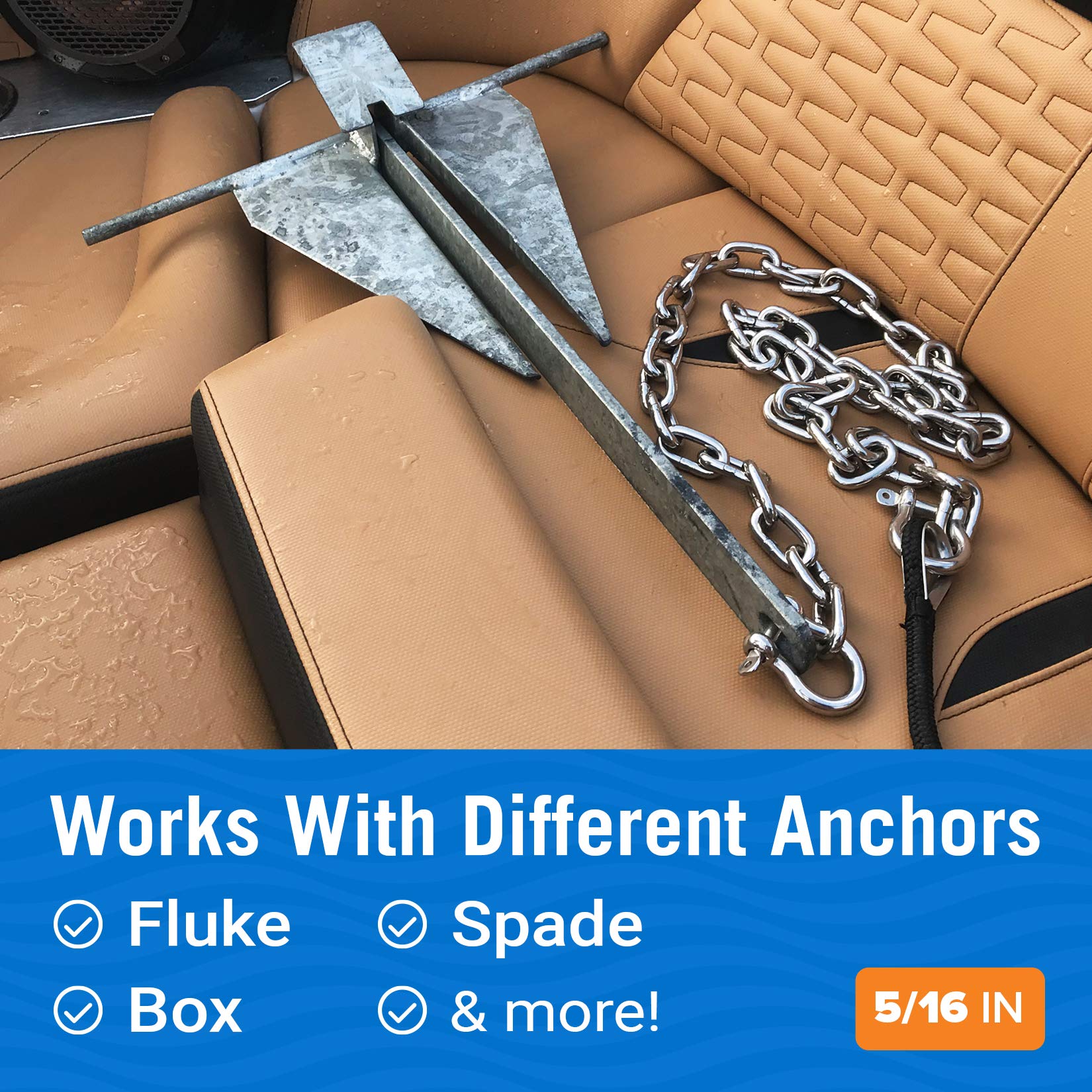 RELIABLE CONNECTIONS: Each chain comes with 2 stainless 3/8" bow shackles to ensure a secure connection with the anchor lead chain and anchor. Chain is abrasion resistant and weighted to properly keep your anchor shank parallel with the sea floor.