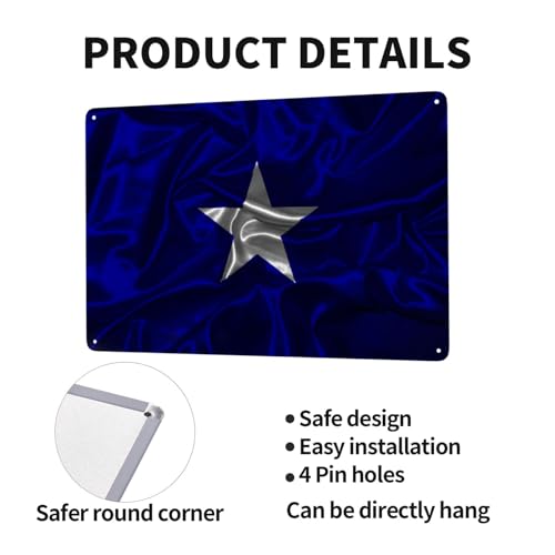 HIGH-END MATERIAL : This Silk Style Bonnie Blue Flag Metal Tin Sign Is Made Of High-End 100% Iron. It Is Not Easy To Deform, Not Easy To Rust, Wear-Resistant And Durable. More Texture. The Four Corners Of The Tin Painting Are Rounded For A Delicate And Beautiful Design, And The Four Corners Are Pre-Drilled For Easy Installation.