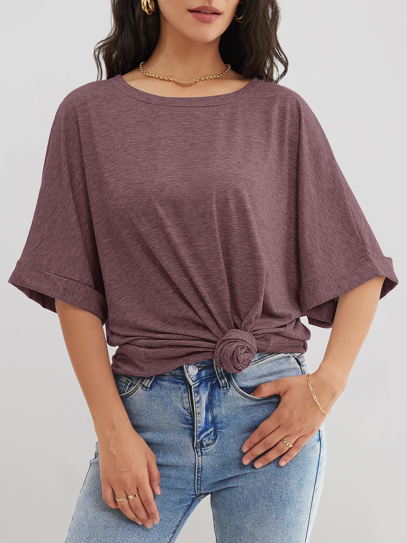 ATHMILE Tshirts Shirts for Women Loose Fit Crewneck Short Sleeve Summer Casual Blouse 2026 Y2K Tee Tops Wine Red