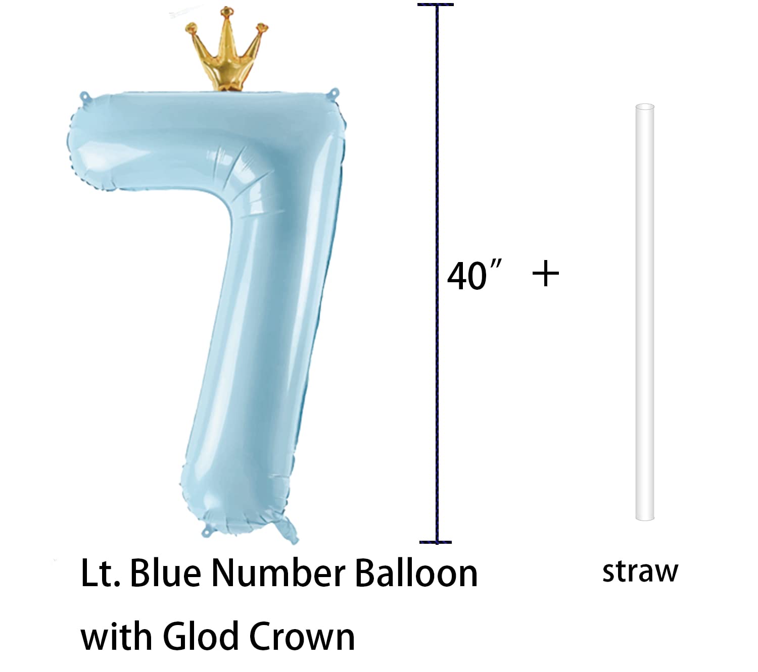About GIFLOON: Welcome to GIFLOON online! Your One Stop Party Shop! GIFLOON is an manufacturer company, committed to Events & Gifts Supplies, Party Supplies, Mylar foil balloon, Number balloons, Birthday, Wedding, Baby shower, Anniversary, Grad Party Decorations. Product Information: Package include: 1pcs number 7 balloon+1pcs Straw Size: 40 inch large Color: Light Blue number balloon with gold crown How to use foil Number Balloon? ~ Find the self-sealing valve, Number balloon has a self-sealing valve, Which is the place to inflate ~ Use a straw or pump to inflate a number balloon with helium or air, number foil balloons can float with helium, while it will not float when filled with air ~ Inflate slowly, just fill 95% of the balloons space that could allow the balloon to expand completely ~ After filling, pinch the self-sealing valve by hand to prevent the gas from leaking out ~ Foil balloon can be reused, use the straw to deflated balloons after party end Number 7 Balloon, Perfect for your birthday, anniversary and other events party decorations!