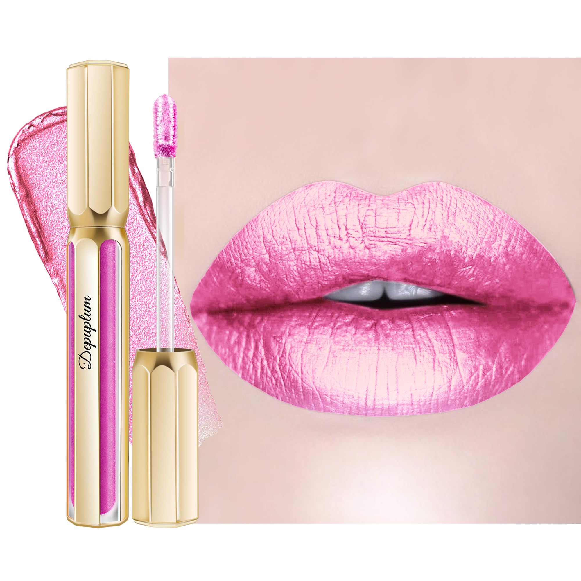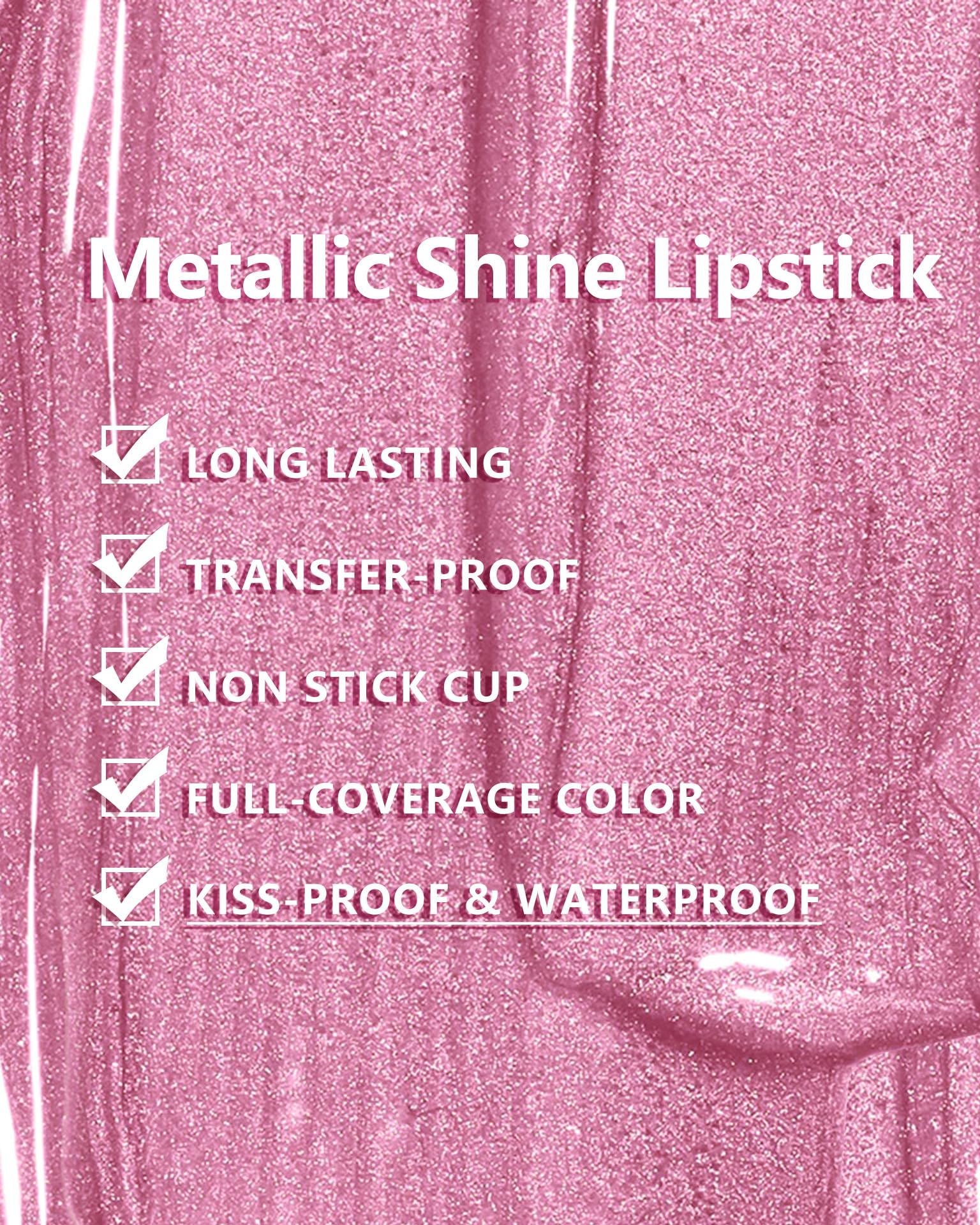 Transfer proof & Long Lasting Lipstick: After it sets, this metallic lip gloss is ready to stay put. Get pro full-coverage color without worrying that your pearlescent lipstick will transfer to your coffee cup. Oil-based foods or lip toppers may affect the long wear.