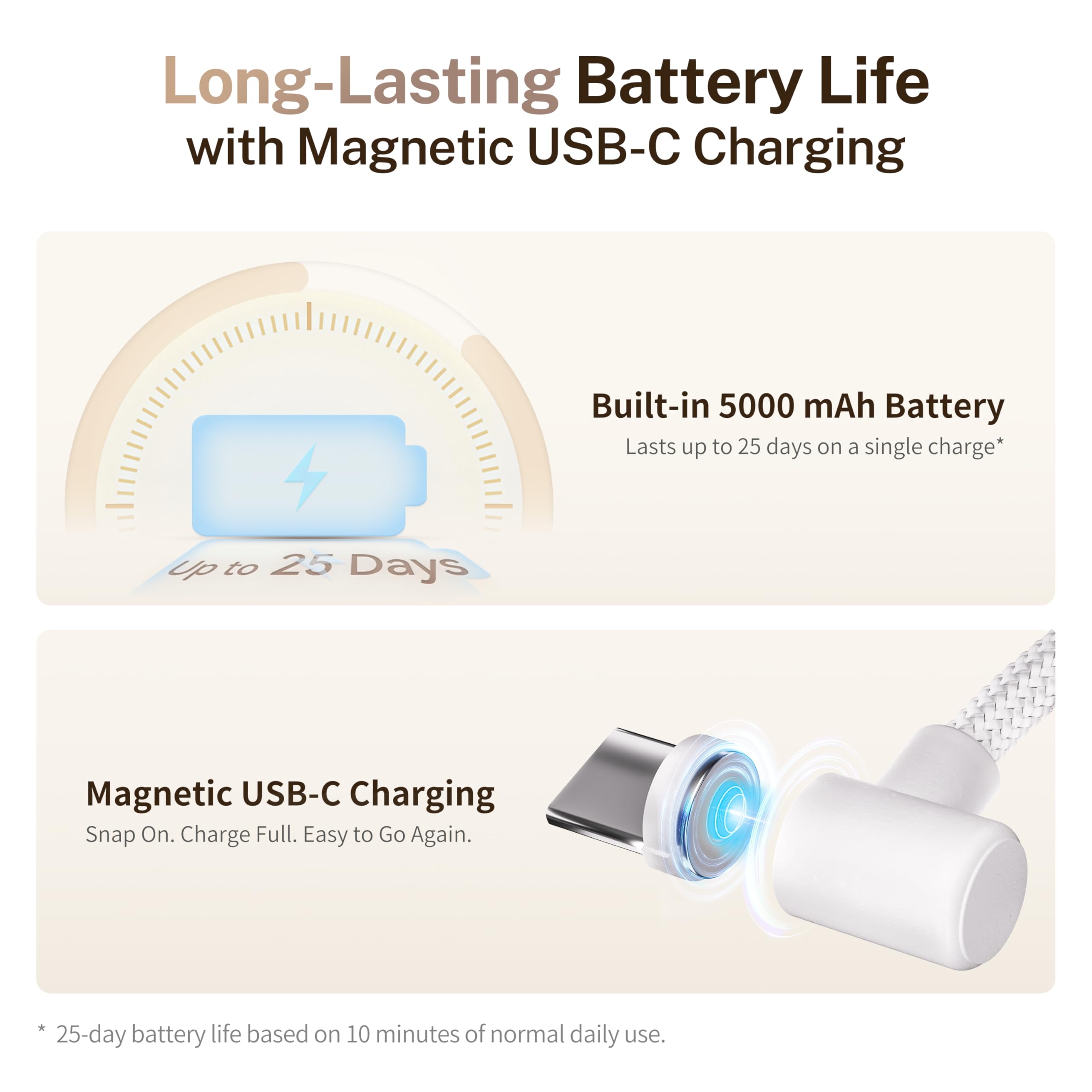 Long-Lasting 5000mAh Battery: Enjoy extended standby for days of interaction on a single charge. When it’s time to power up, simply use the magnetic USB-C cable—always ready when you need it