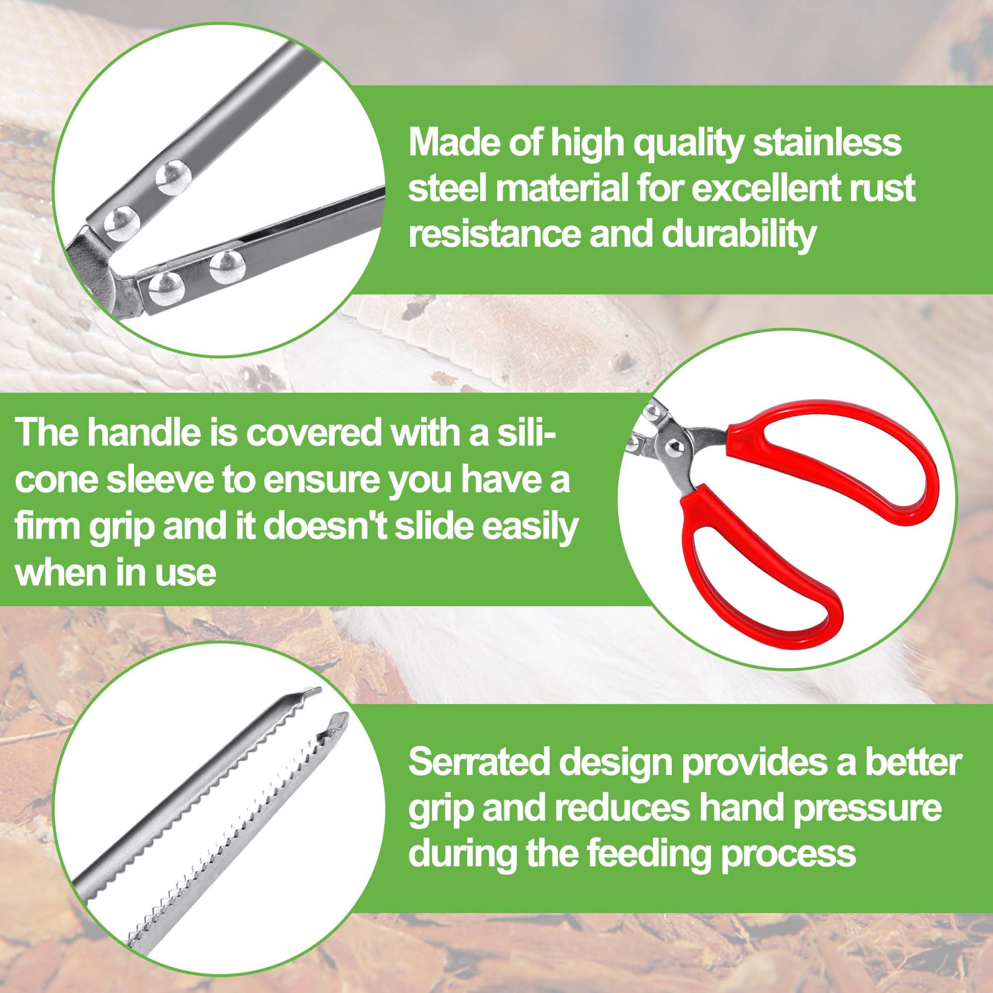 Safe and Reliable Length Design: Safety is crucial when feeding snake animals. With a total length of 15 inches, our snake feeding tongs are long enough to ensure that you have enough distance between you and the snake to reduce the risk of accidental bites. This design allows you to feel more secure and at ease during the feeding process.