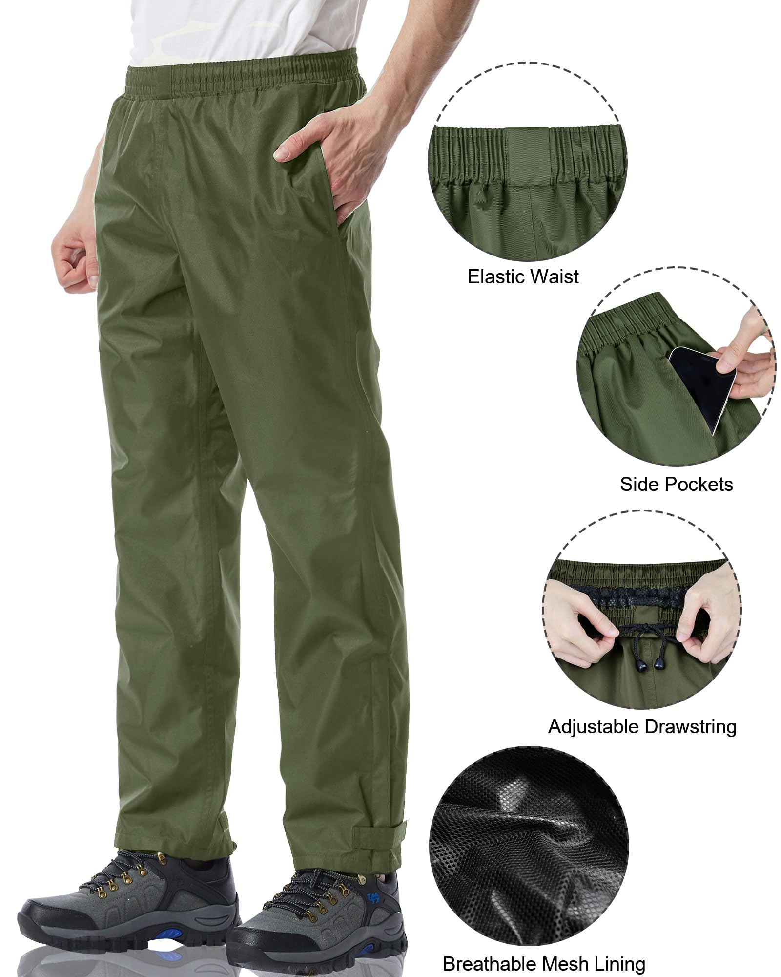 Waterproof Fabric: 100% Waterproof and windproof, keeps you dry in the rain. Waterproof rating: 5000mm. iCreek men's rain pants are made of premium nano polyester waterproof fabric, it is waterproof, soft, comfortable, etc