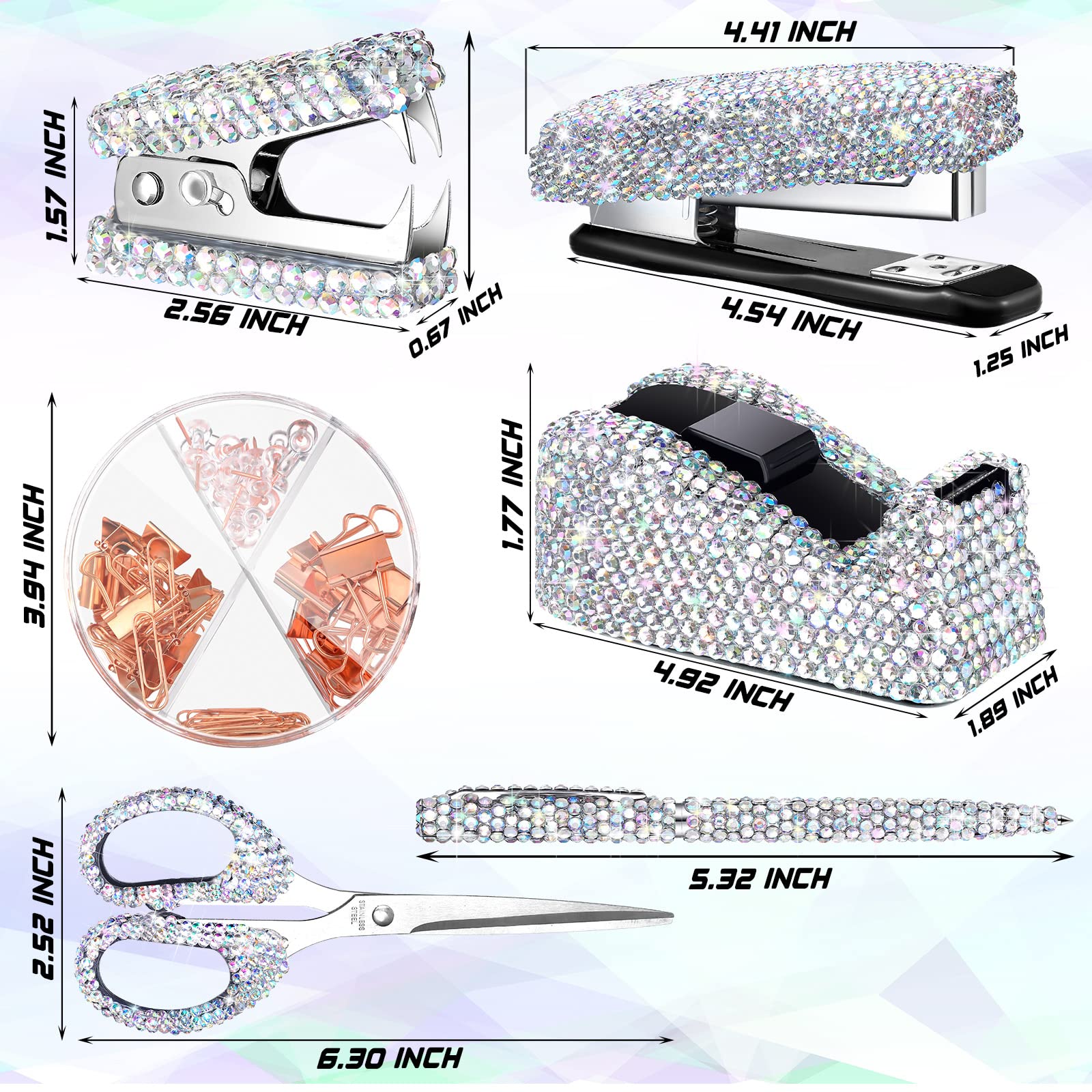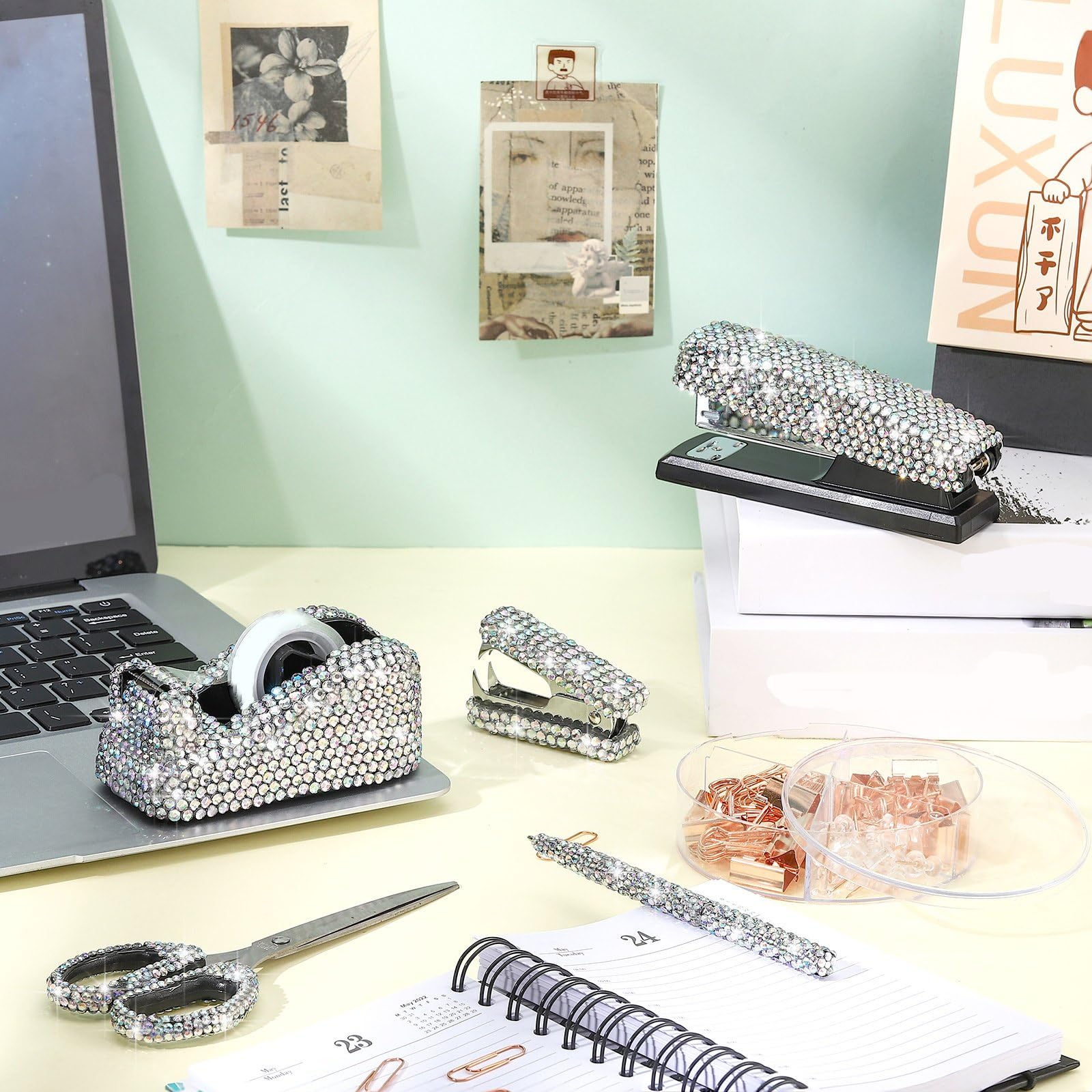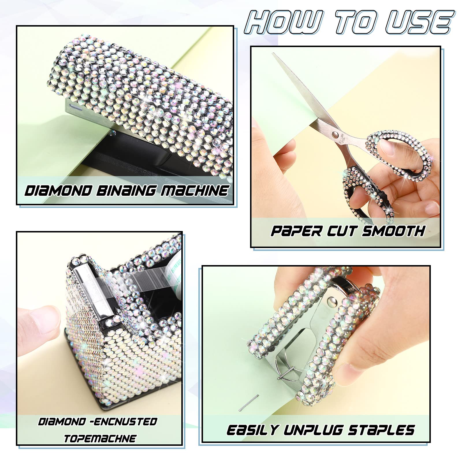 Practical to Apply: our diamond pen, scissor, bling stapler are suitable for your study or home use, tape dispenser can help you cut tape according to your needs, practical and convenient