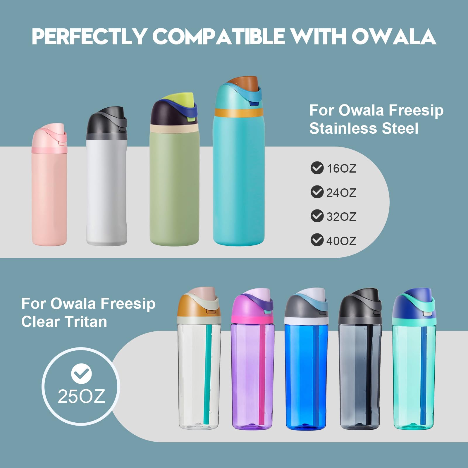 【Precise Compatibility】Specifically designed to fit Owala FreeSip Stainless Steel bottles (16oz/24oz/32oz/40oz) and 25oz Clear Tritan Plastic bottles. Always confirm your bottle model prior to purchase to ensure perfect fitment and performance.