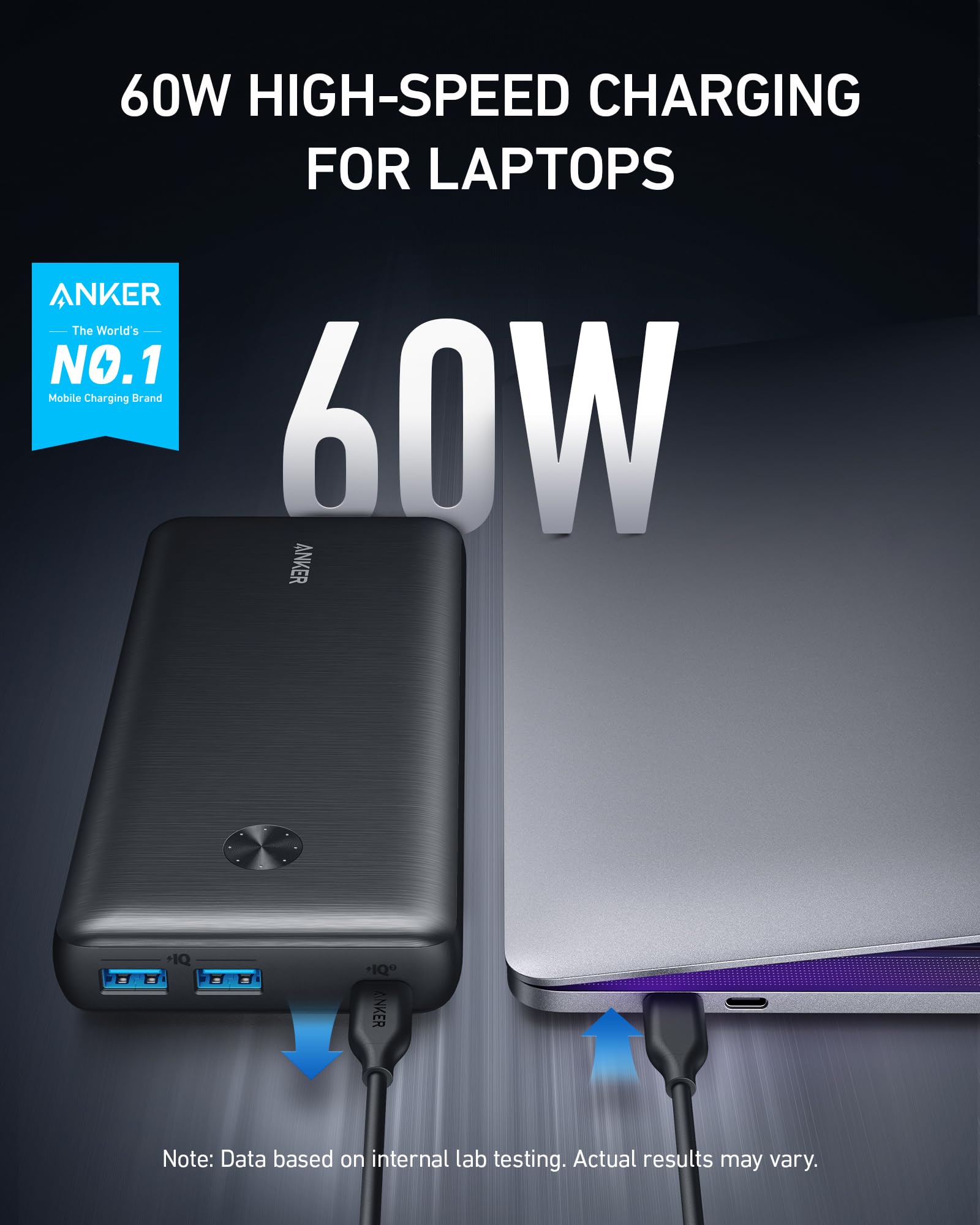 <b>Charge Laptops Anywhere</b>An ultra-powerful 60W USB-C port combined with PowerCore’s ultra-high capacity means you can charge a wide range of laptops on-the-go including MacBook 13.4ʺ, Lenovo 720S, and Dell XPS 13.