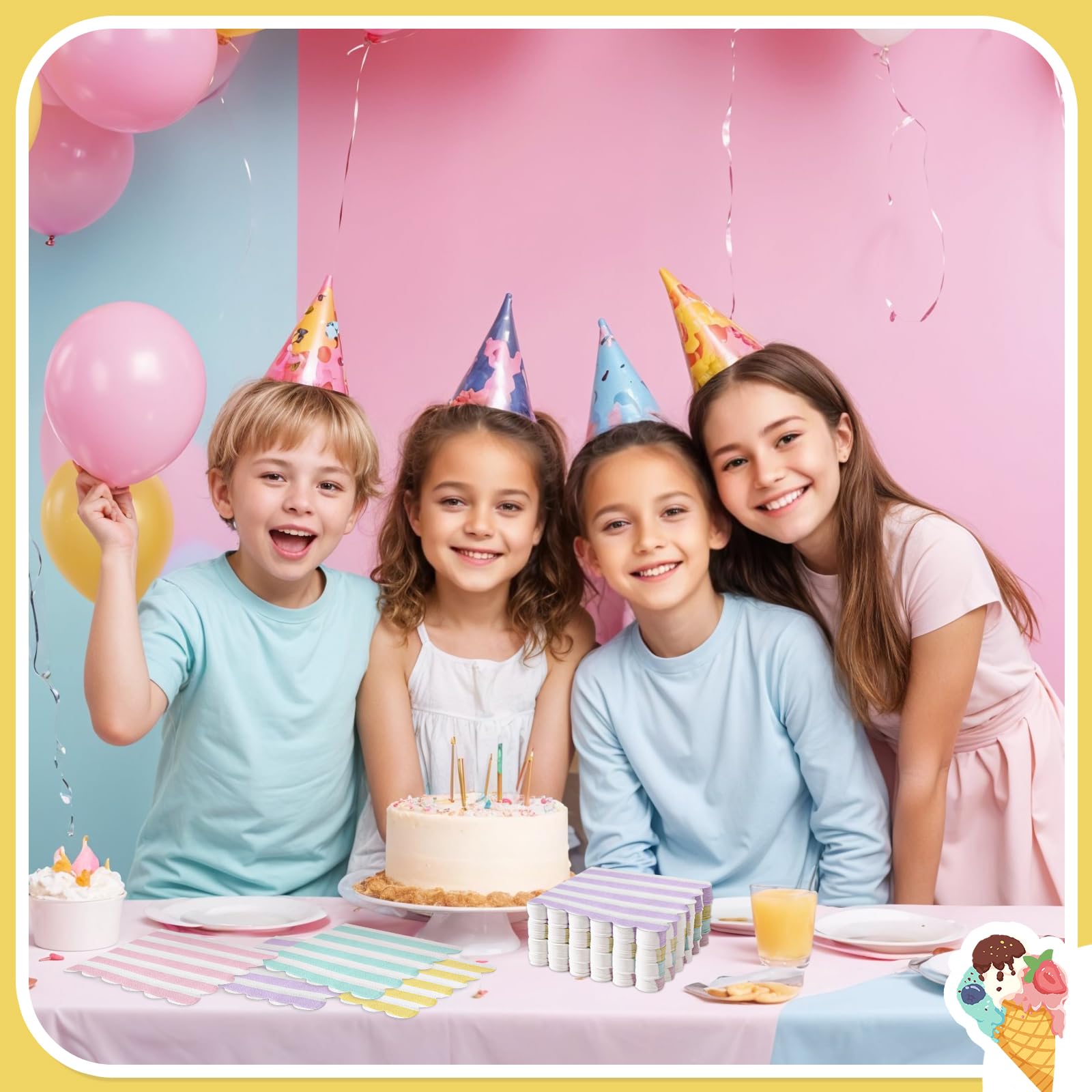 Gradient Pastel Color Design: Disposable cocktail napkins are available in 4 different pastel colors, such as pink,yellow,purple,blue. The classic scalloped rim enhances cute of party napkins, making it a better decoration for party tables
