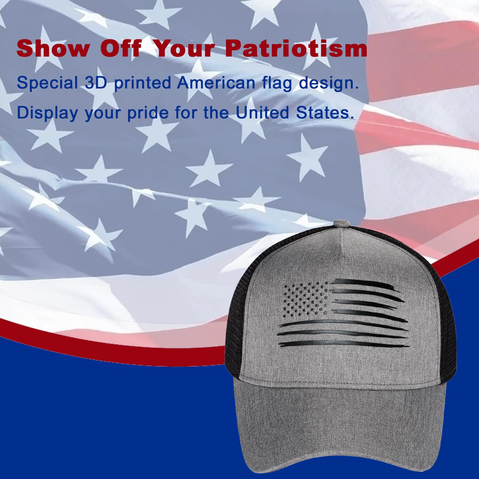 2.Patriotic Style with Premium American Flag Design – Show your love for the USA with this bold, printed American flag design. The US flag cap front panel features a high-quality, fade-resistant print, making it a stylish and patriotic accessory for any occasion and everyday wear.