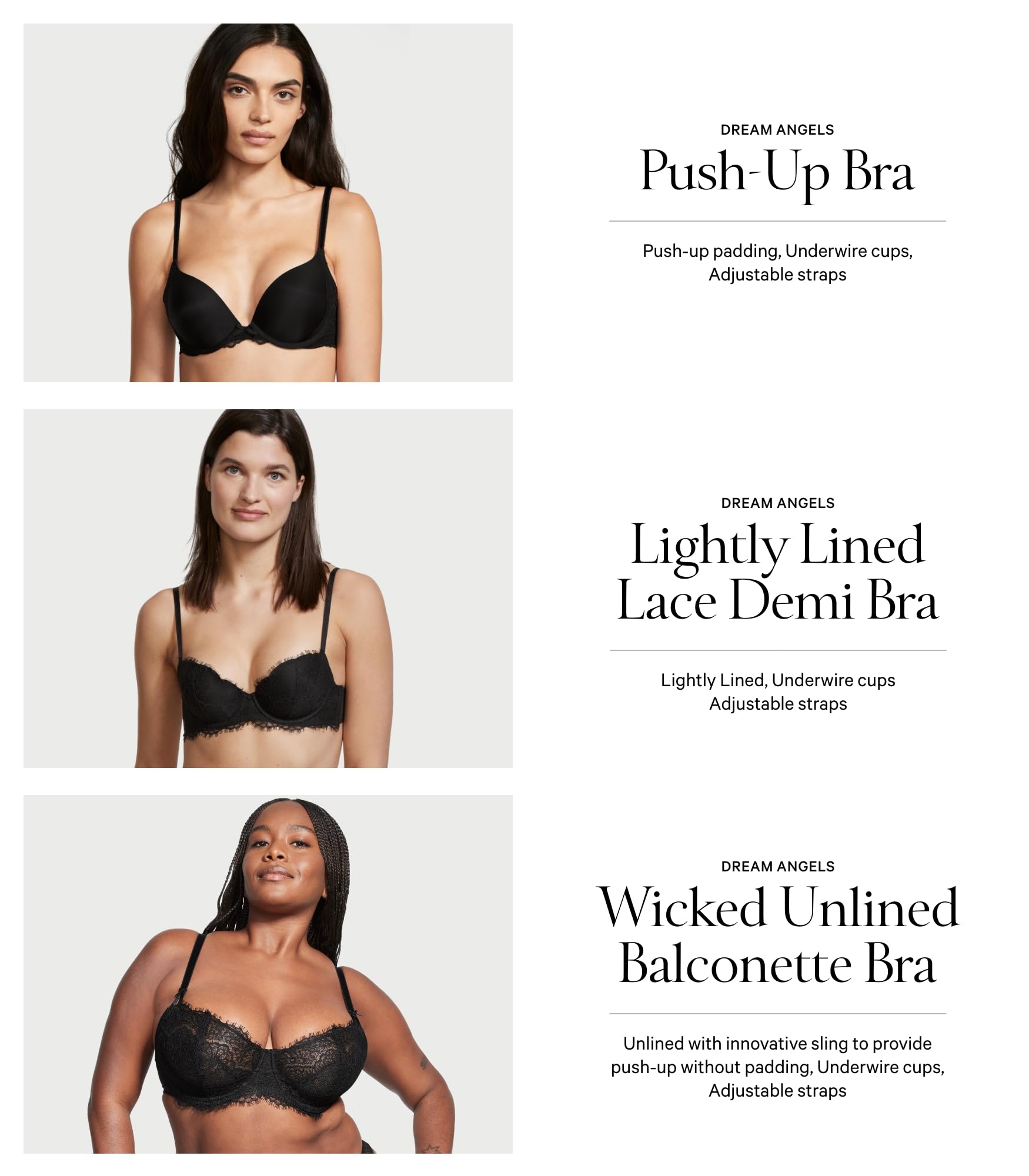 Discover Victoria’s Secret Dream: Your favorite Bras revolutionized with your best fit in mind. Beauty meets comfort with superior details like pillowy Marshmallow Cloud Foam and supersoft ForeverStretch Lace for the dreamiest look and feel.