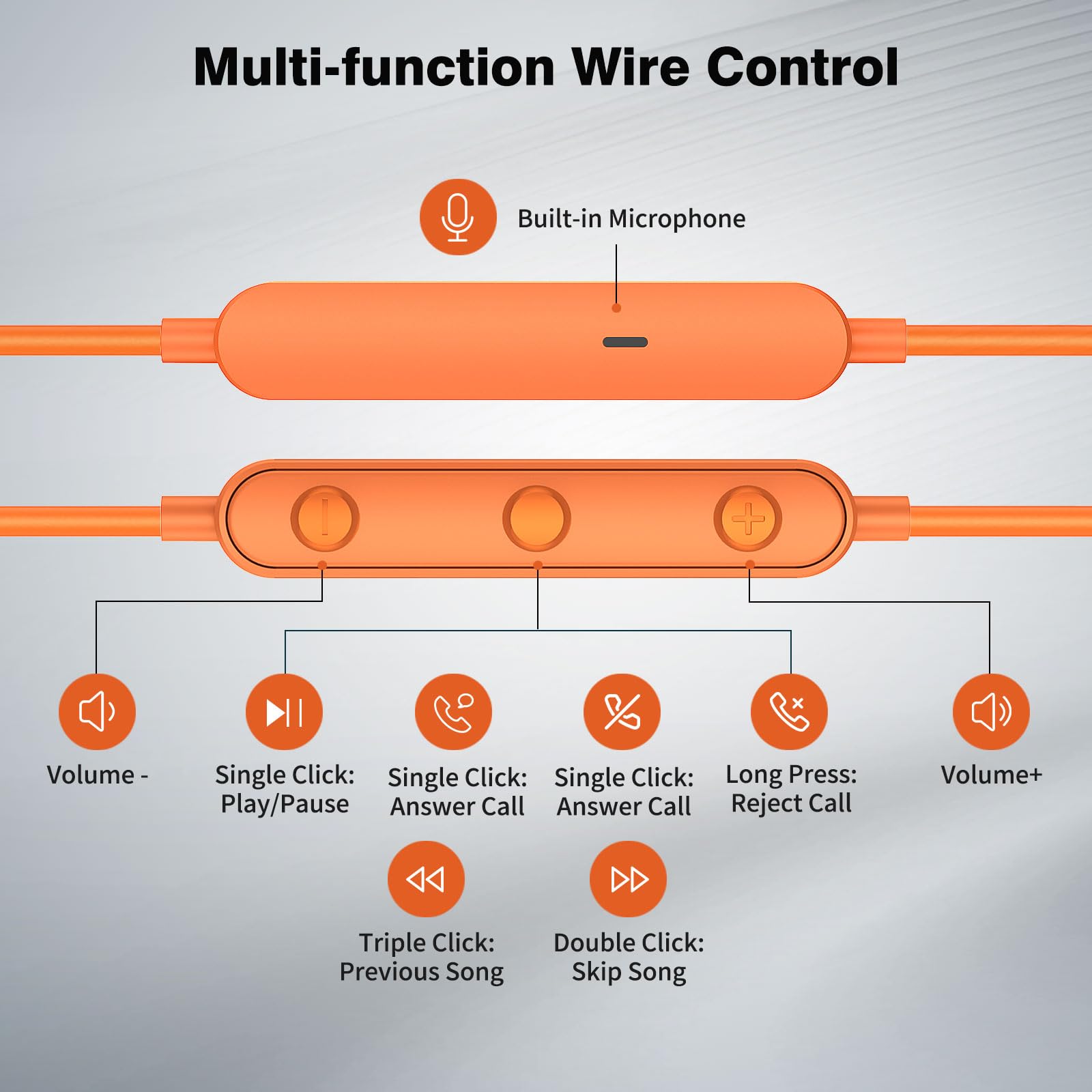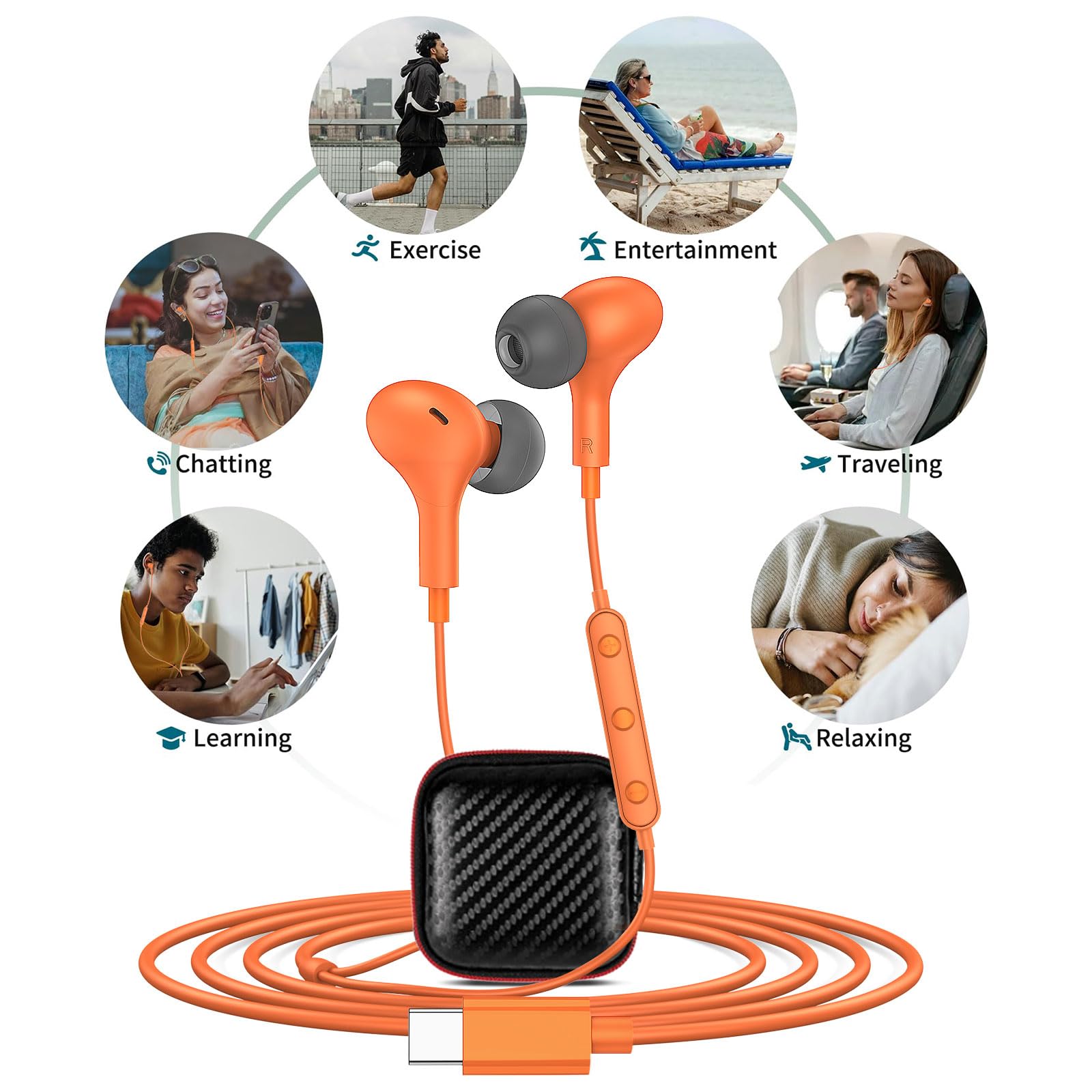 Updated Microphone and Wired Control: The Type C Earphones usb-c connector, microphone and mutifunction wire control updated to reinforced metal material for more flexible and robust, anti-slip joint design let easierly plug and unplug; Very convenient for hands-free calling/voice commands, remote control volume/skip songs, answer/end/reject call without holding the phone, perfect for on-the-go use (Microphone on the right side)