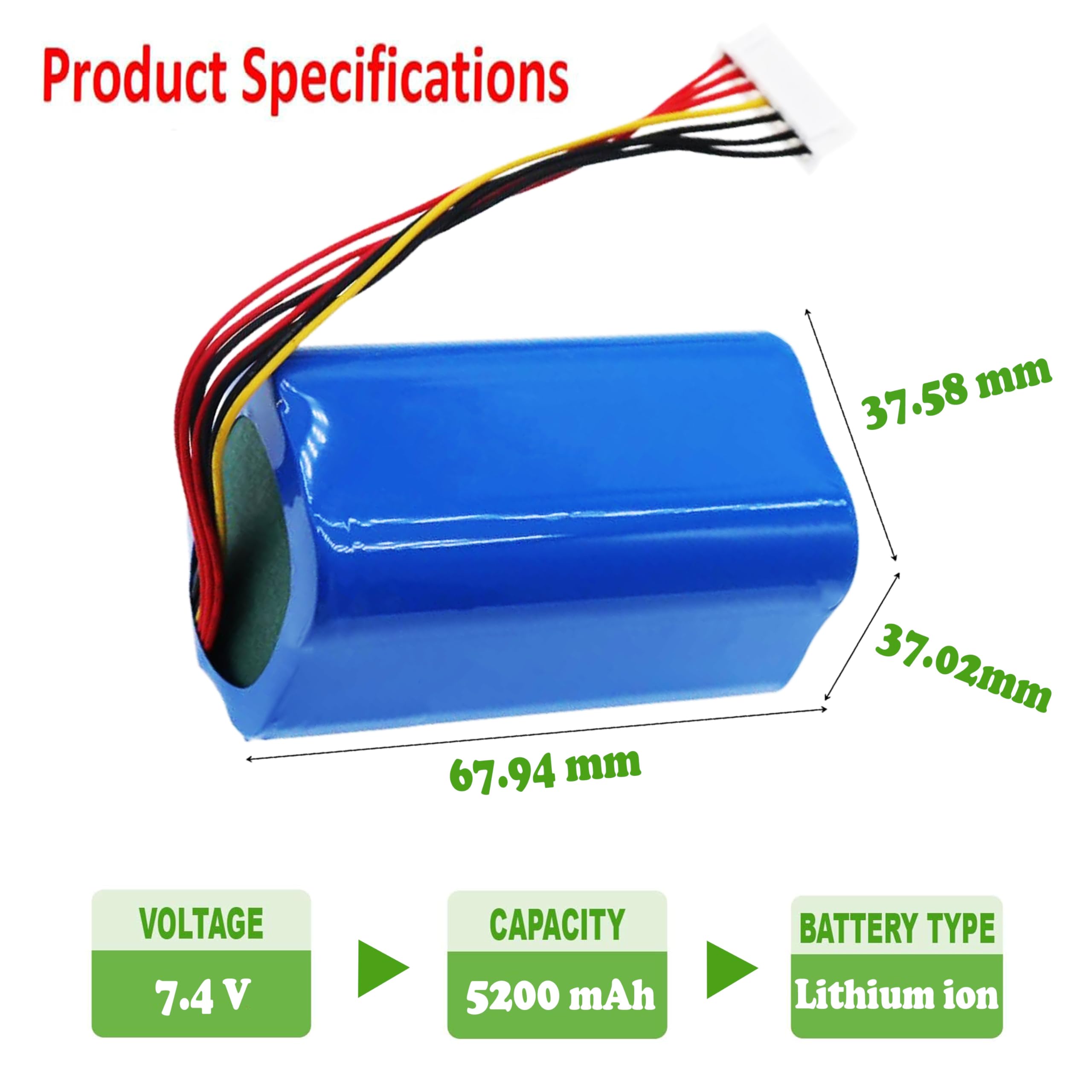 Kit includes : So-ny Bluetooth Speaker Battery*1 Compatible Models : So-ny SRS-XB30, SRS-XB43,SRS-XB3, SRS-X30 Battery Part Number So-ny ID659B, ID659 Specifications Voltage:7.4V Capacity: 5200mAh / 38.48Wh Size: 67.94 x 37.58 x 37.02mm Type: Li-ion Weight:260.4g Friendly Reminder After the battery is placed for a period of time, it enters a dormant state, and the capacity is lower than normal. Multiple normal charge and discharge cycles are required to activate the battery and restore normal capacity. Installation Tips If you want to make replacing your battery easier, we highly recommend watching this battery replacement video on YouTube. Novices can easily install, no need to worry about the installation is too complicated. Tips Before Purchase Please double confirm the compatible model and original battery part number before you purchase it.(You can quickly search with Ctrl+F).If you are not sure,If you have any questions, please feel free to contact us at any time, we will give you free professional suggestion.Your satisfaction is very important to us,if you have any questions,If you have any questions, please feel free to contact us at any time,and we will reply within 24 hours.