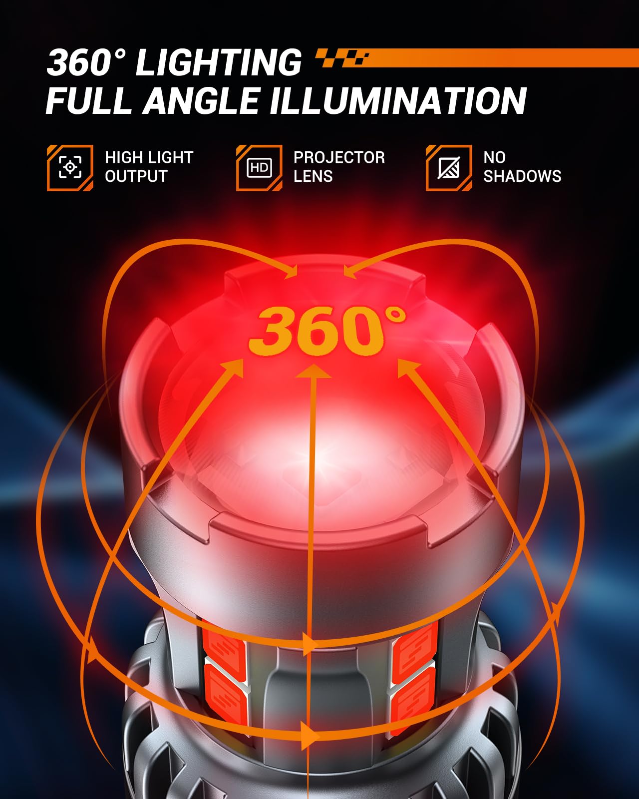 【600% Increase Brightness】The upgraded high-brightness 3030-SMD chips precisely embedded in the 3157 LED light bulb.360° full view angle, No dark spots,No shadow,Delivering pure red color lighting output for superior visibility and safety in all directions.