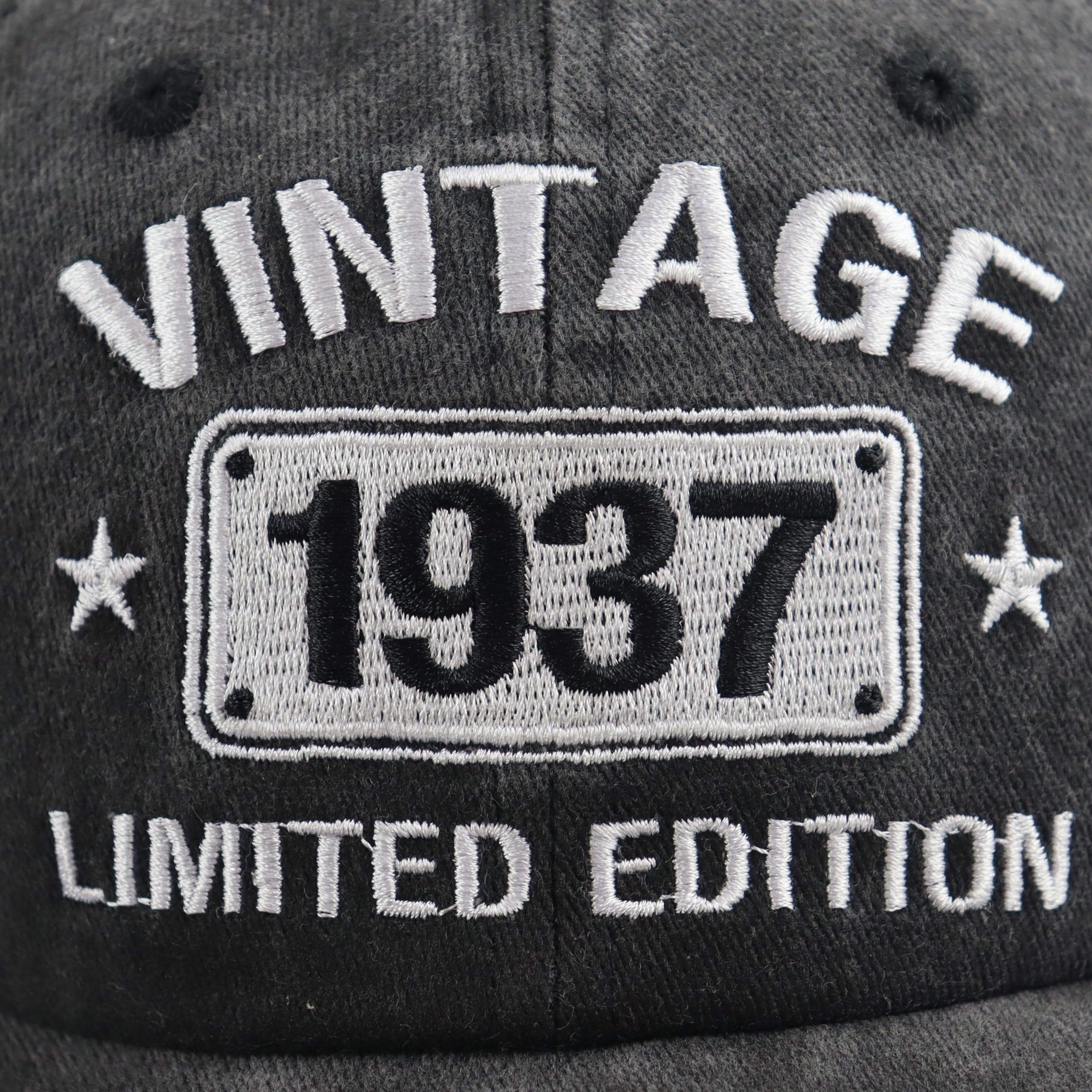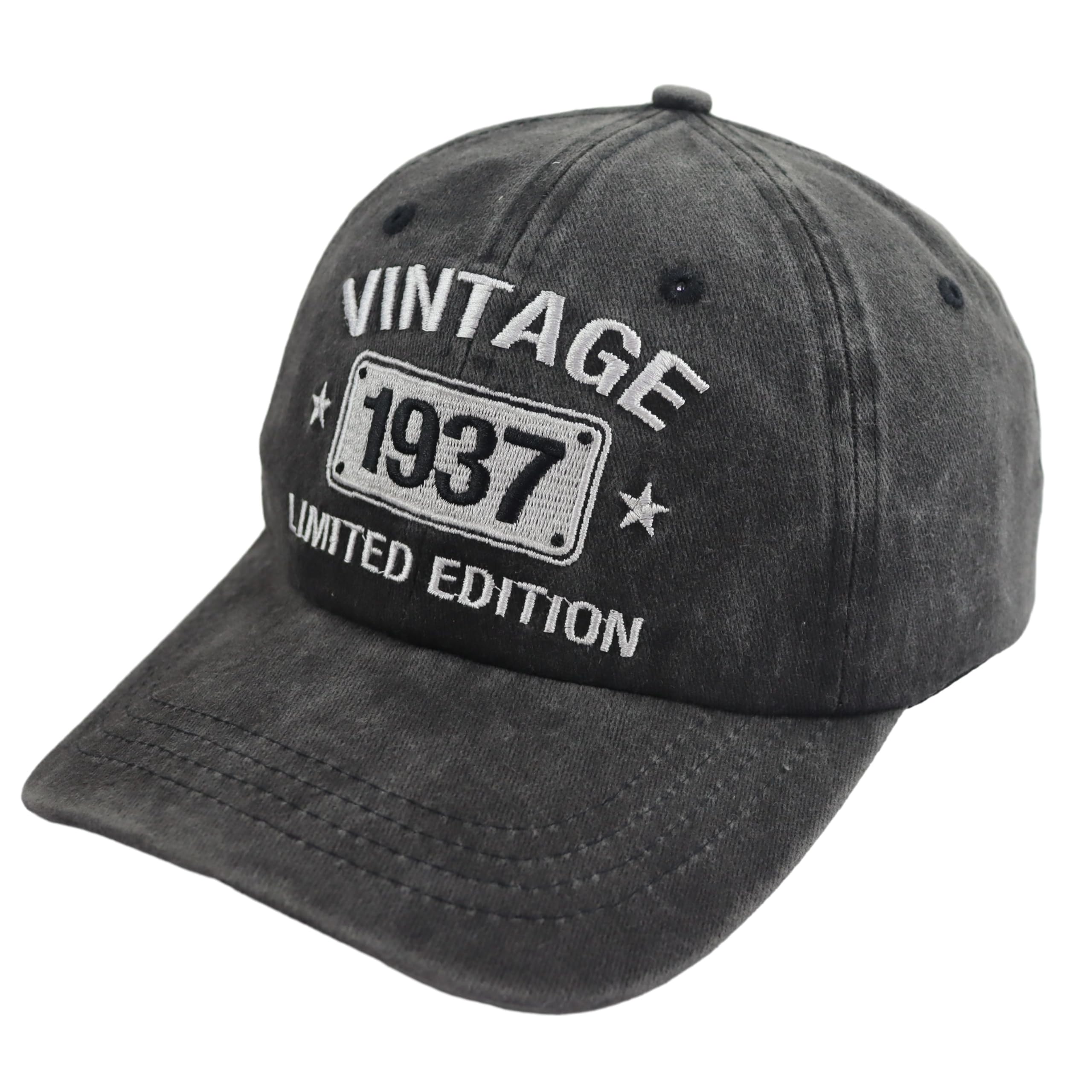 Vintage 1937 Hat Premium Material: Embroidery " Vintage 1937 Limited Edition ", Logo on Front. Funny 1937 Birthday Caps 100 Percent Cotton Denim Fabric, Excellent Quanlity Soft Tactility. Vintage 1937 Baseball Cap The Inner Side Is Equipped with A Sweat Absorbing Belt to Absorb Moisture and Wick Away Moisture, Breathable Comfort, Lightweight and Dry.