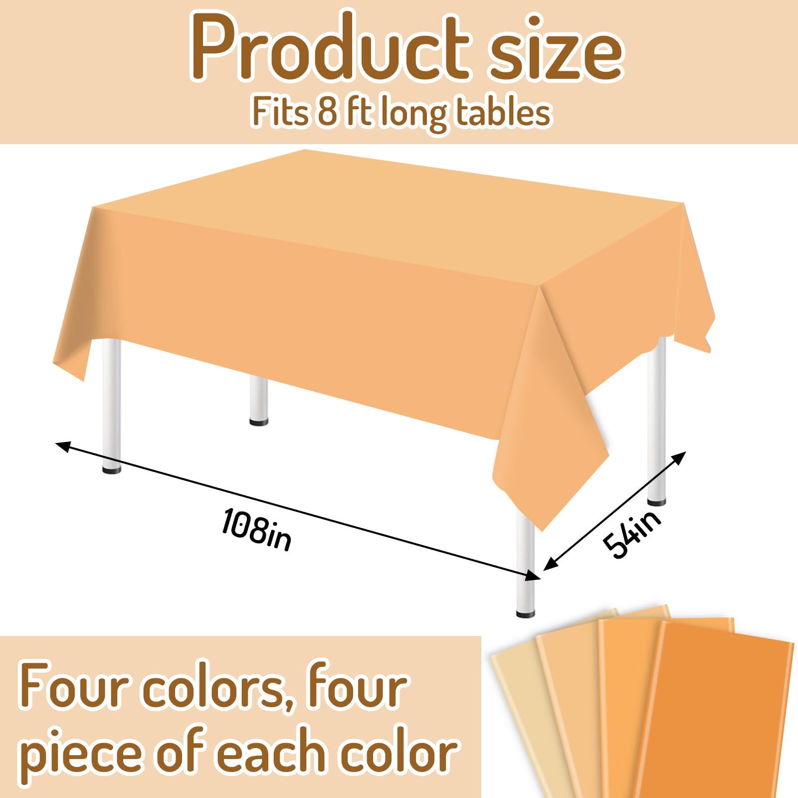 Package Includes: 16 pcs tablecloth in 4 colors, each color 4 pcs, which are sufficient for you to use and replace