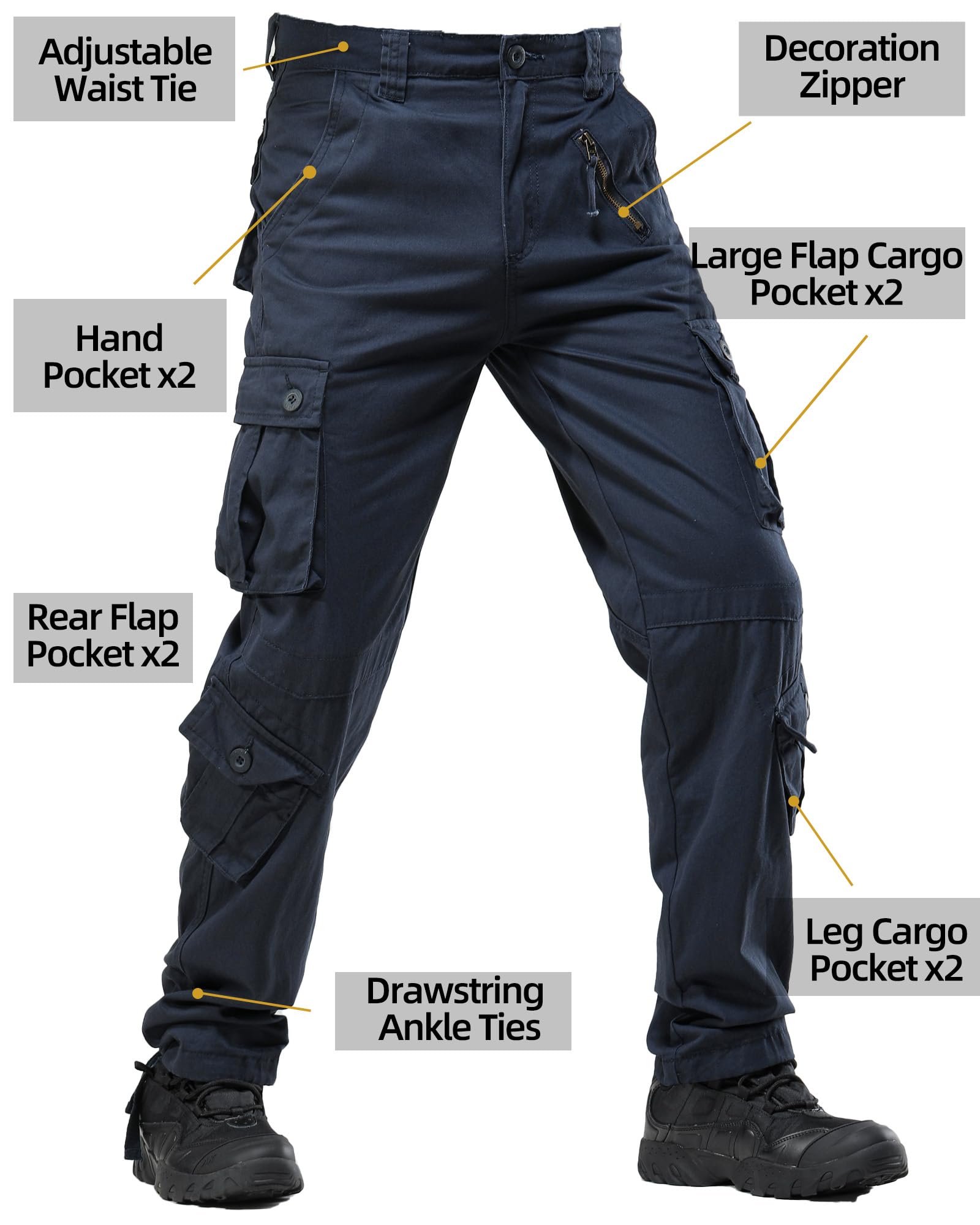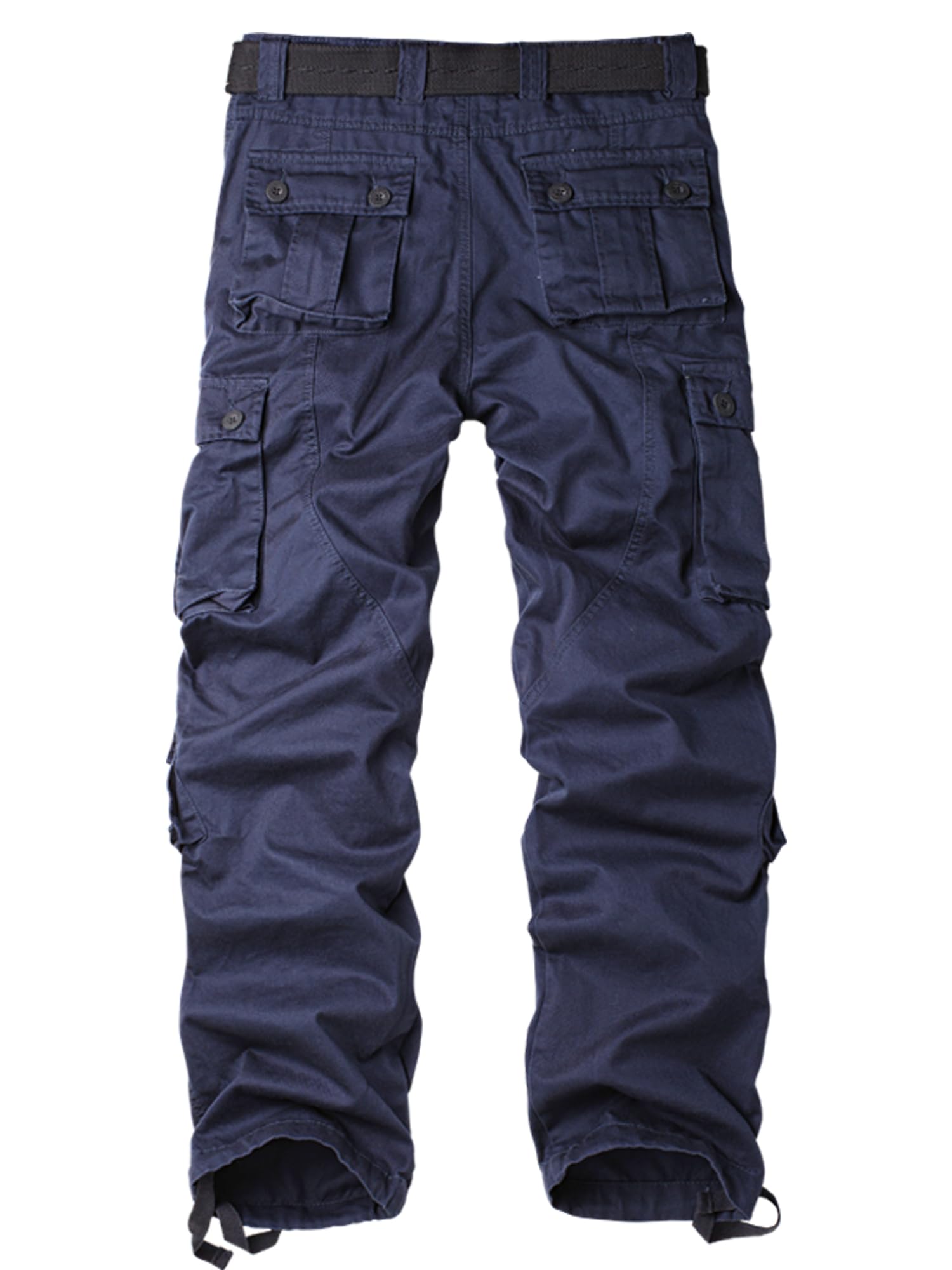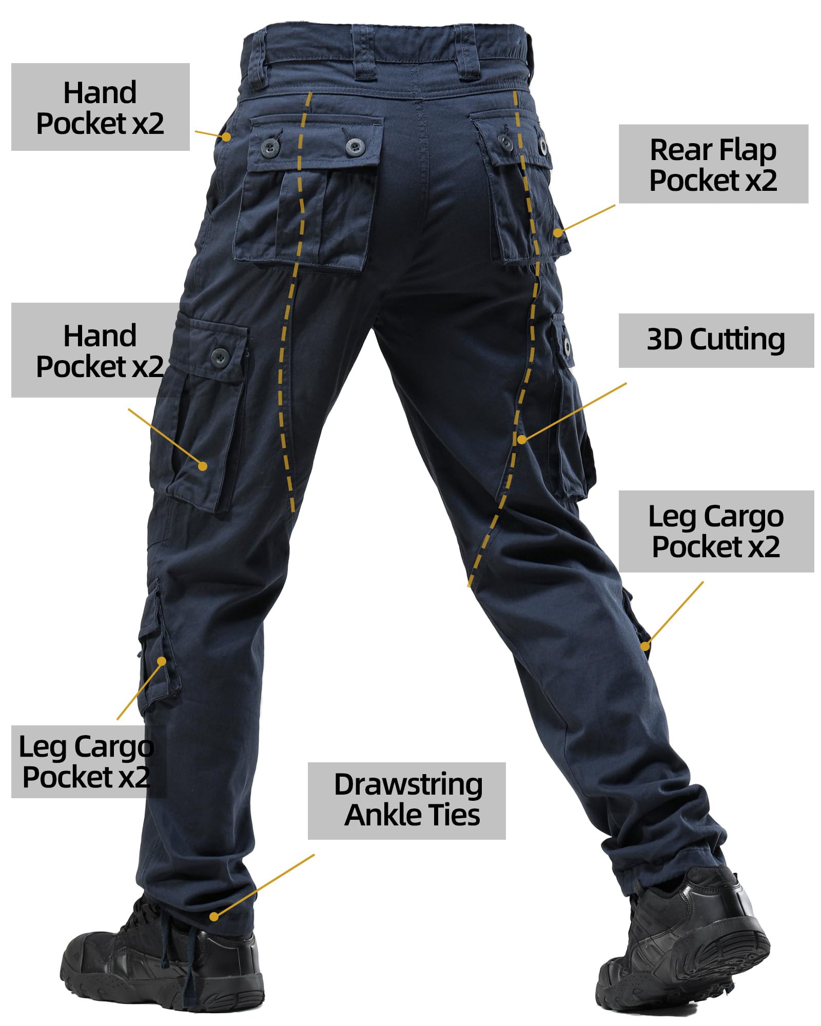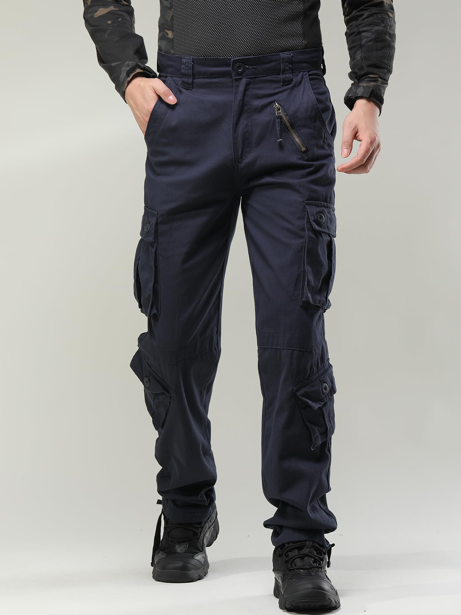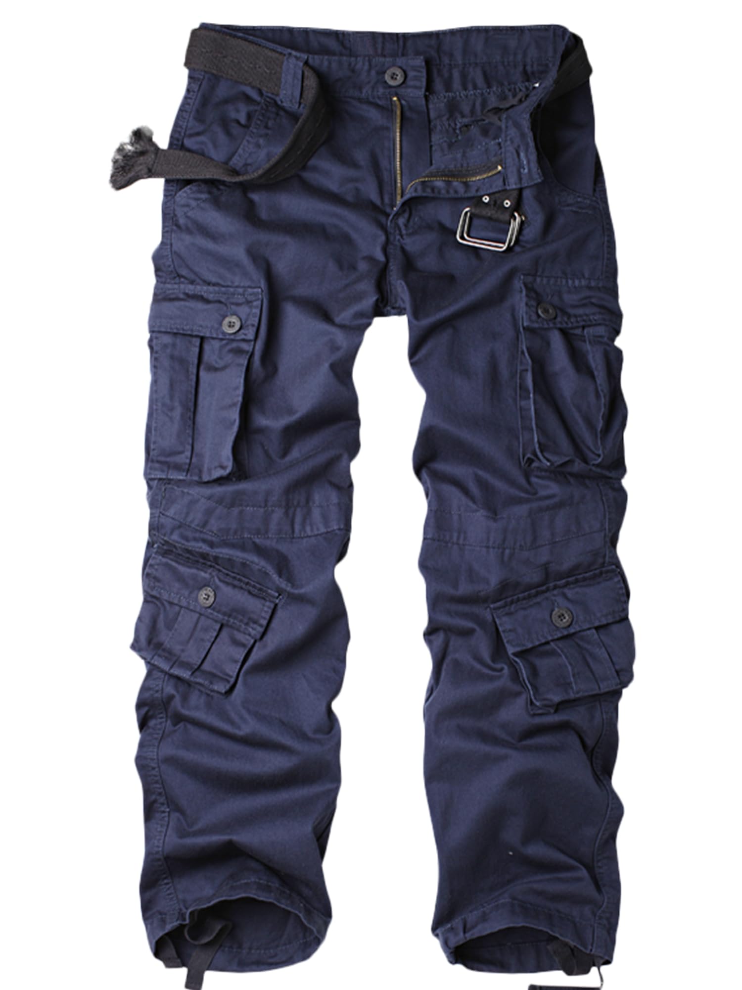 Product Design:Classic cargo pants with 8 pockets;they are all three-dimensional design,2 flat slant pockets for hands-free use and convenient access,4 cargo pockets provide secure equipment storage,2 back buttoned pockets provide deep, secure storage that makes it easier to carry additional personal things,also,one left front zipper fake pocket is a good decoration..Designed with a relaxed fit through the seat and thigh, these men's casual wear will keep you comfortable during any task.
