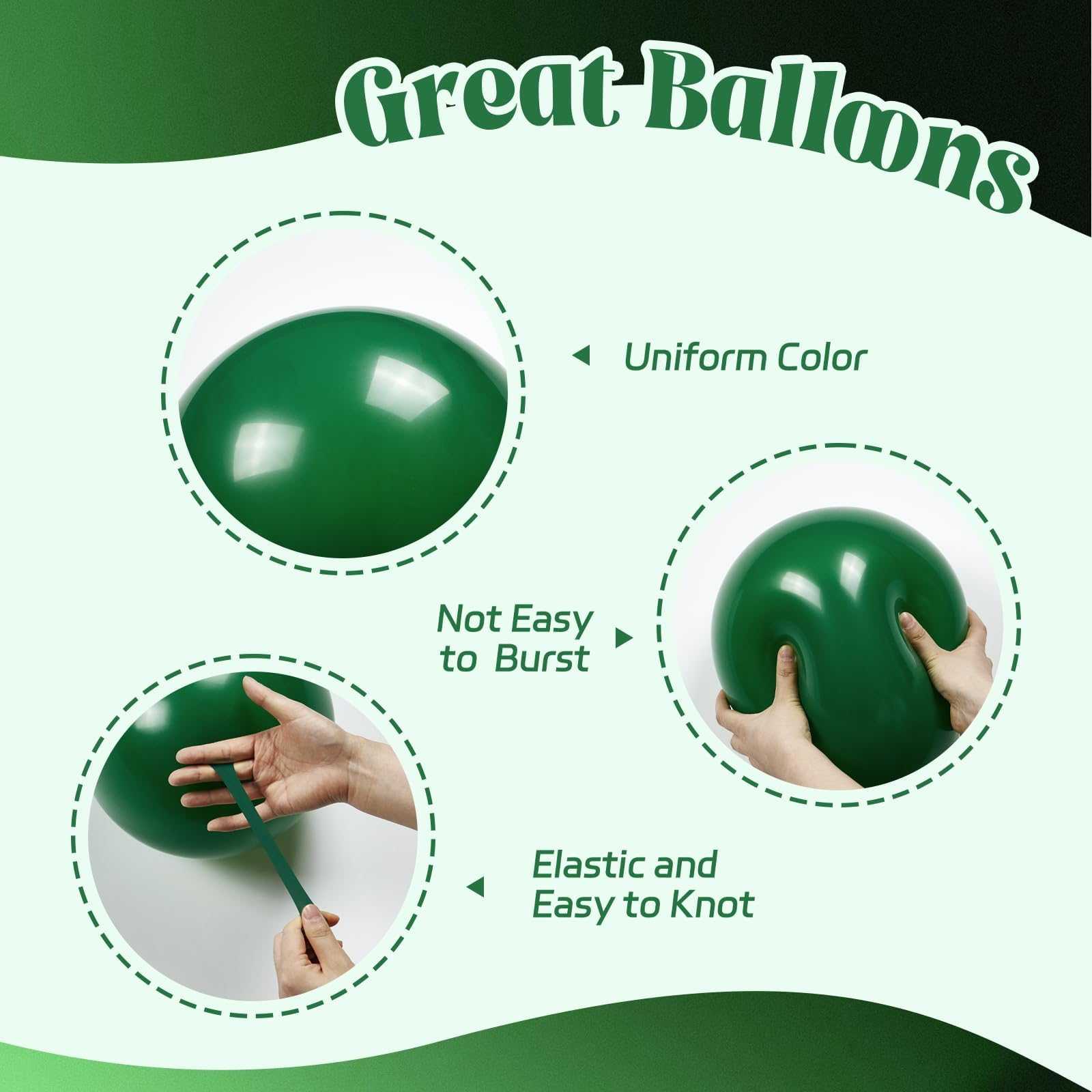 Great Quality: The black and green balloons are made of great latex, it offers great elasticity, thick and sturdy