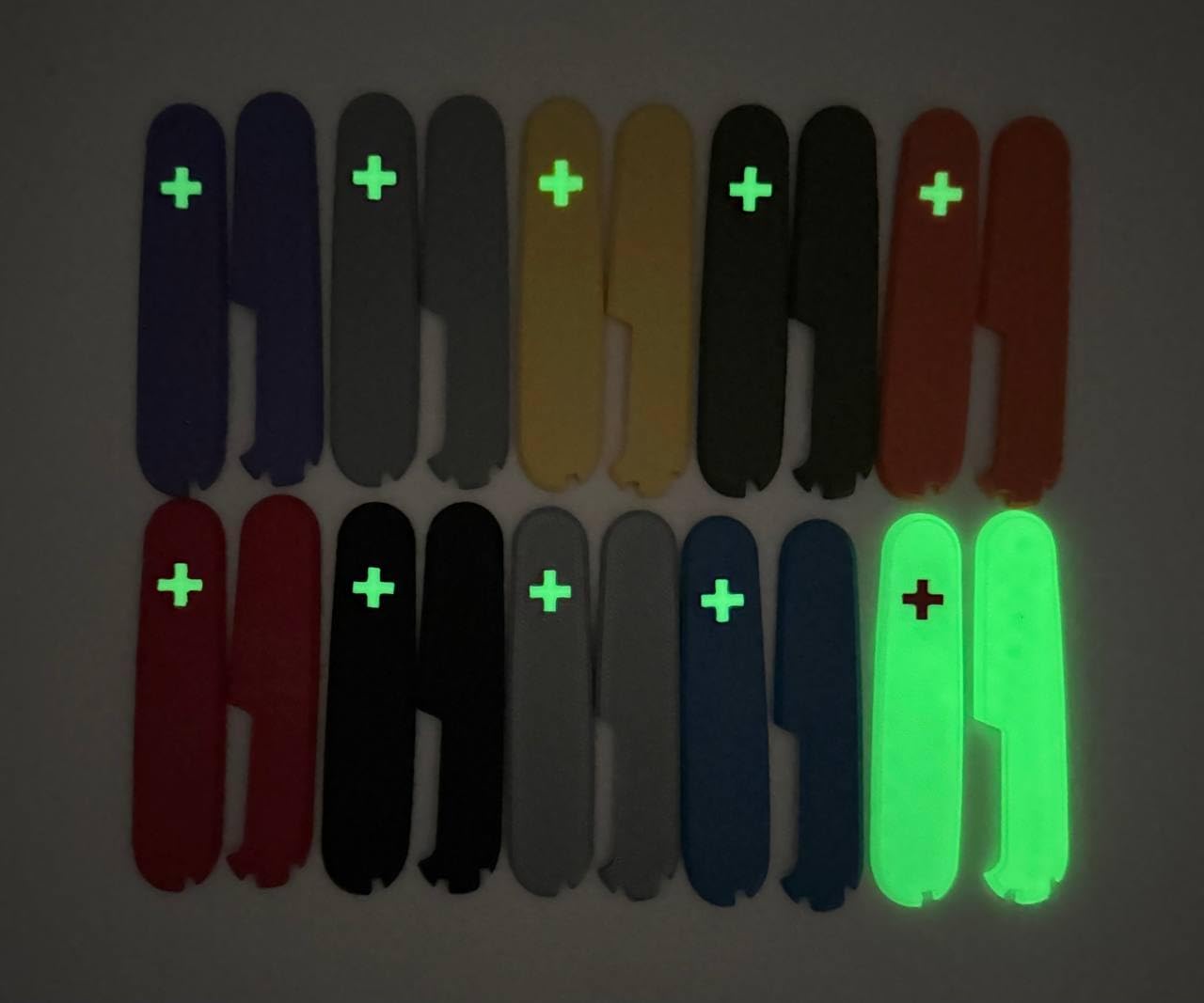 Replacement Covers For Victorinox Scales Plus 91mm Plastic Handles With Extra Pen Slot And Glowing Cross Replacement scales - Suitable only for 91mm Victorinox Swiss Army - Include slots for ballpoint pen - toothpick - tweezers and pin - Cutout for screwdriver/corkscrew tool - Supplied as 1 pair (front and back handles) with toothpick, tweezers and ballpoint pen - The handles have beveled fixing points - they require carefully applied pressure to fit them tightly - push fitting them by hand is usually not adequate - Care must be taken when fitting. We do not accept liability for damage to handles or tools during fitting. - PLEASE NOTE: these are the replacement handles only. The Swiss army tools are NOT included.