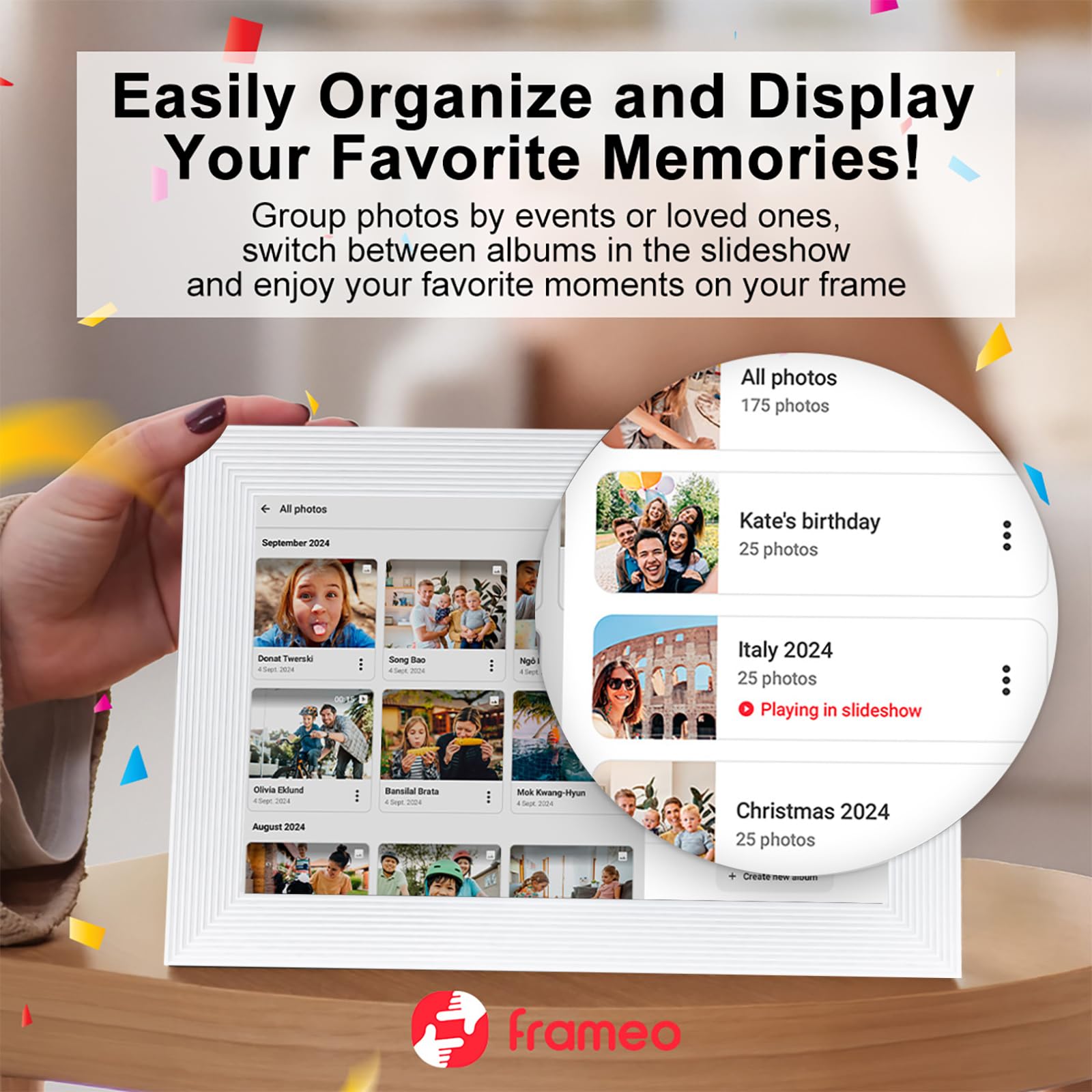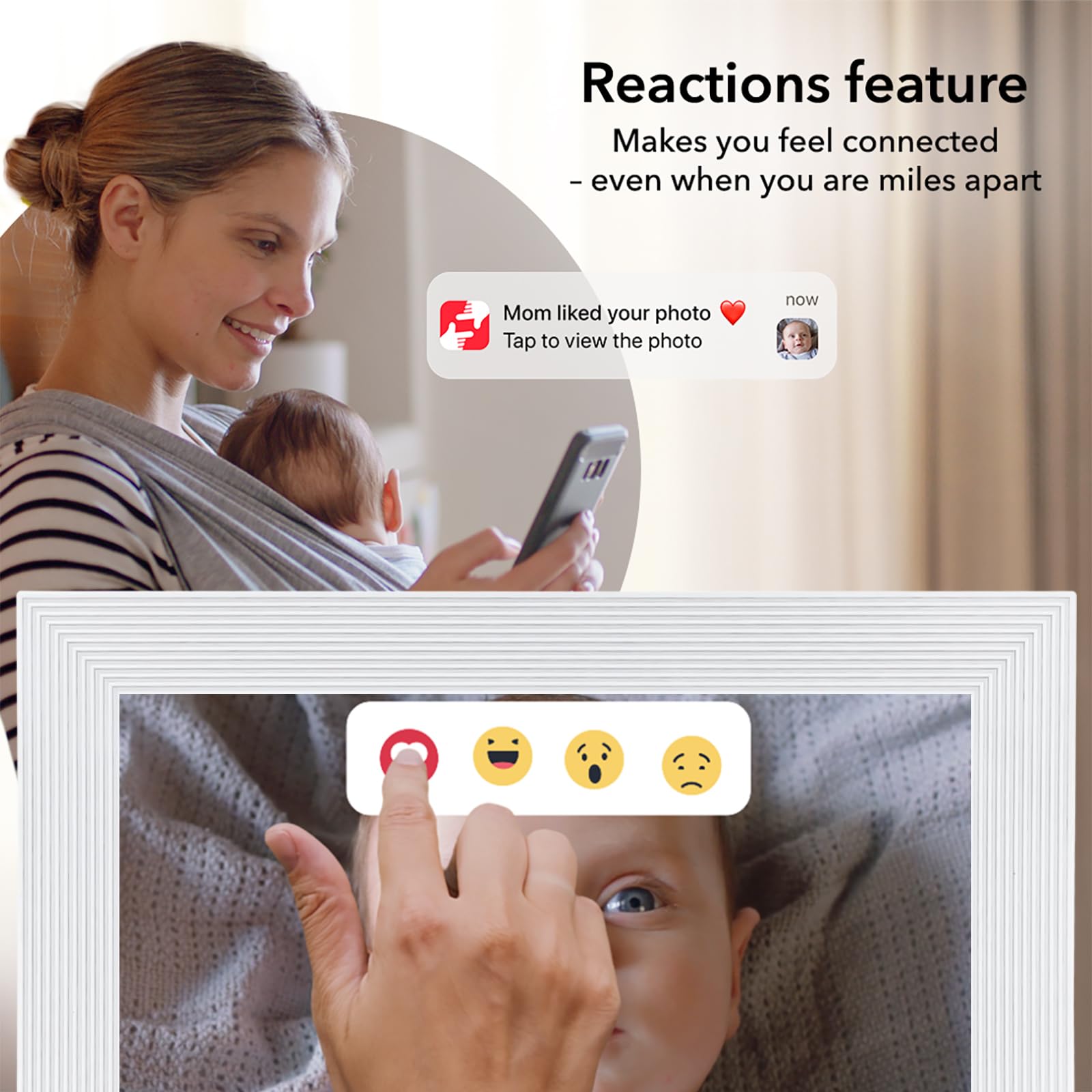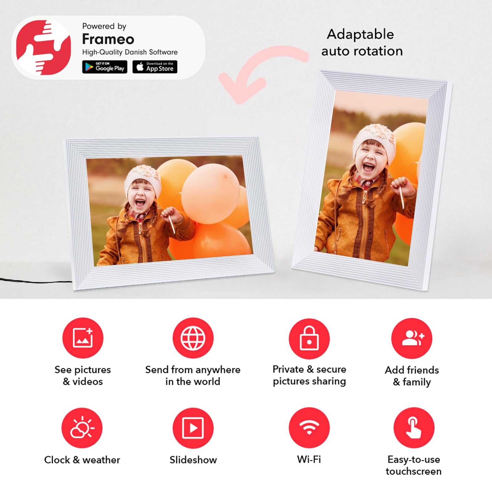 【Wireless Connectivity and App Integration】: The Frameo white wifi digital frame is a remarkable digital picture frame that can load pictures directly from your phone. Simply connect this electronic picture frame to Wi-Fi and share wonderful moments via the “Frameo APP,” available for both Android and iOS devices. With this app, you can send photos or short videos to the photo frame electronic anytime, anywhere, allowing for seamless sharing of precious memories.