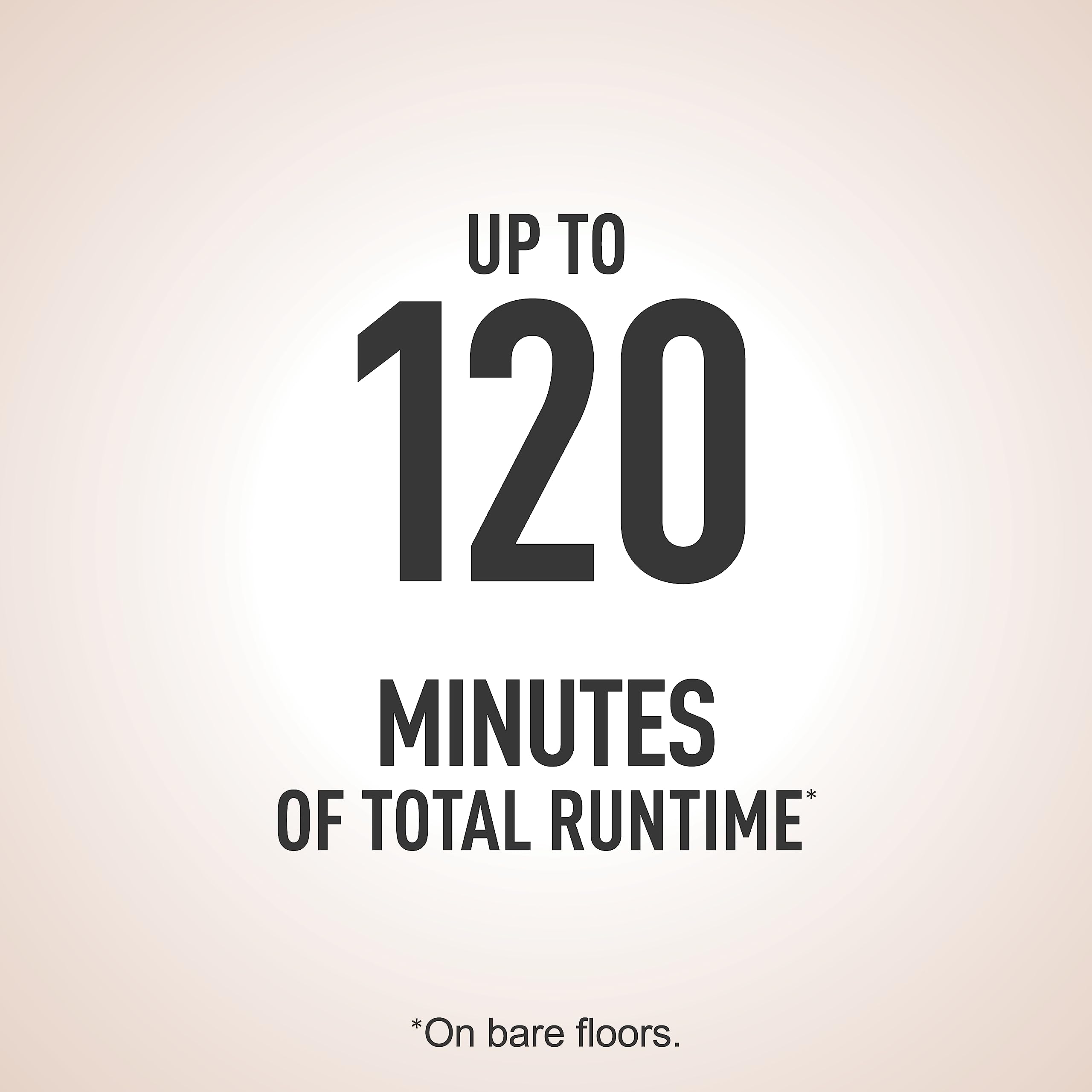 120 MINUTE RUNTIME: Whole-home, floor-to-carpet cleaning for up to 2 hours.
