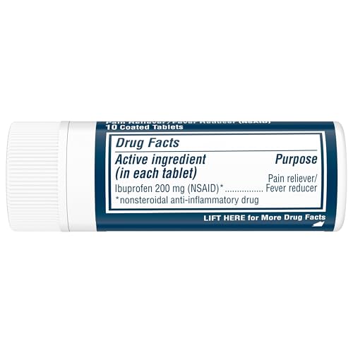One vial of 10 Advil Pain Reliever and Fever Reducer Coated Tablets, Pain Relief Medicine with Ibuprofen 200mg for Headache, Backache, Menstrual Pain and Joint Pain Relief