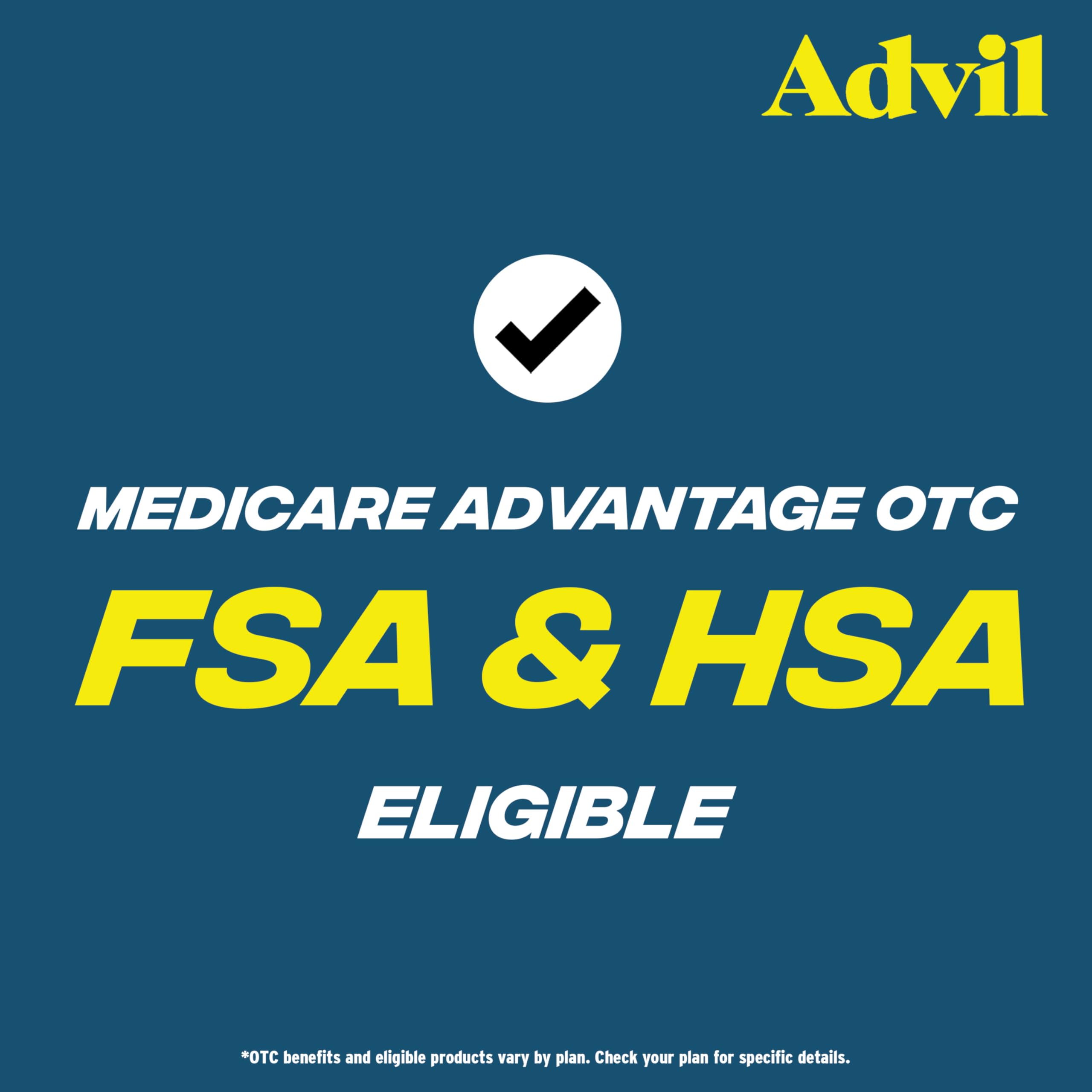 Advil stops pain where it starts, providing a powerful pain reliever. Whether you have a headache, muscle ache, backache, toothache, menstrual pain, minor joint pain, or aches and pains from the common cold, Advil brings relief where you need it. This fever reducer and pain medicine for adults is scientifically designed to block the chemicals in the body that cause pain and fever. Each tablet contains ibuprofen 200mg, a non-steroidal anti-inflammatory drug (NSAID). Coated Advil tablets are easy to swallow, providing relief for up to 6 hours. One Advil is all it often takes for headache relief, muscle ache relief, joint pain relief, or minor arthritis pain relief, and the medicine in Advil is what doctors use most for their own aches and pains. HSA and FSA eligible items. The world's best-selling ibuprofen brand, Advil has provided safe, effective pain relief for over 35 years. By 2022, Advil will feature more sustainable packaging made with 20% less plastic per bottle, to keep nearly 500,000 pounds of plastic out of landfills. Get ready to head back to college with confidence and stock up ensuring you're ready for anything the academic year throws your way. Nothing's stronger on tough pain than Advil. (1) (1) Among non-prescription analgesics