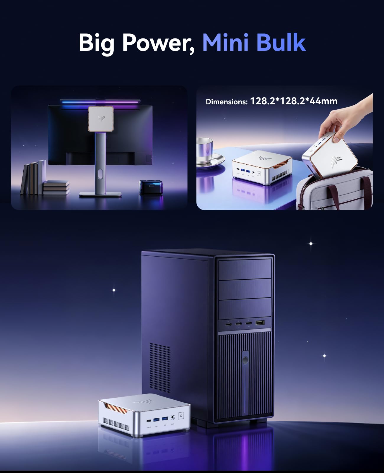 【Compact Size, Infinite Possibilities】KAMRUI H2 mini computers measures just 5.04 x 5.04 x 1.63 inches, a fraction of the size of a traditional desktop, yet delivers powerful performance for demanding workloads. With the included VESA mount, you can easily attach small pc behind a monitor or place it in your TV cabinet, turning your display into a sleek mini PC while saving valuable desk space.