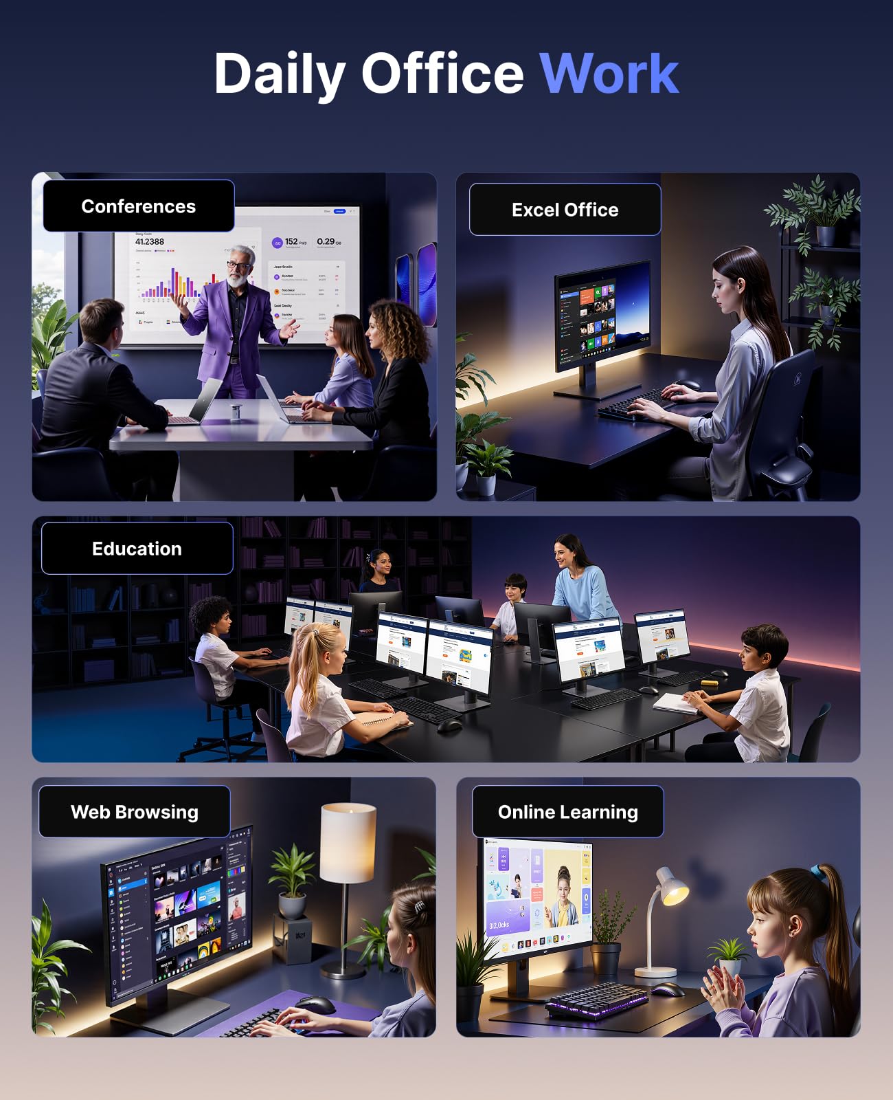 【4K UHD Triple Display】KAMRUI 14900HX Mini PC features a 4K@60Hz UHD graphics card (Intel UHD Graphics), supporting 4K@60Hz high-definition video playback for a premium visual experience. Mini Gaming PC incorporates an HDMI 2.0 port + DP 1.4 port + USB3.2 Gen2 Type-C port, supporting 4K triple display output. Mini PC can connect to three monitors to fulfil your multi-screen collaboration requirements. Ultra-high-definition visuals and ultra-fast connectivity significantly enhance your productivity.